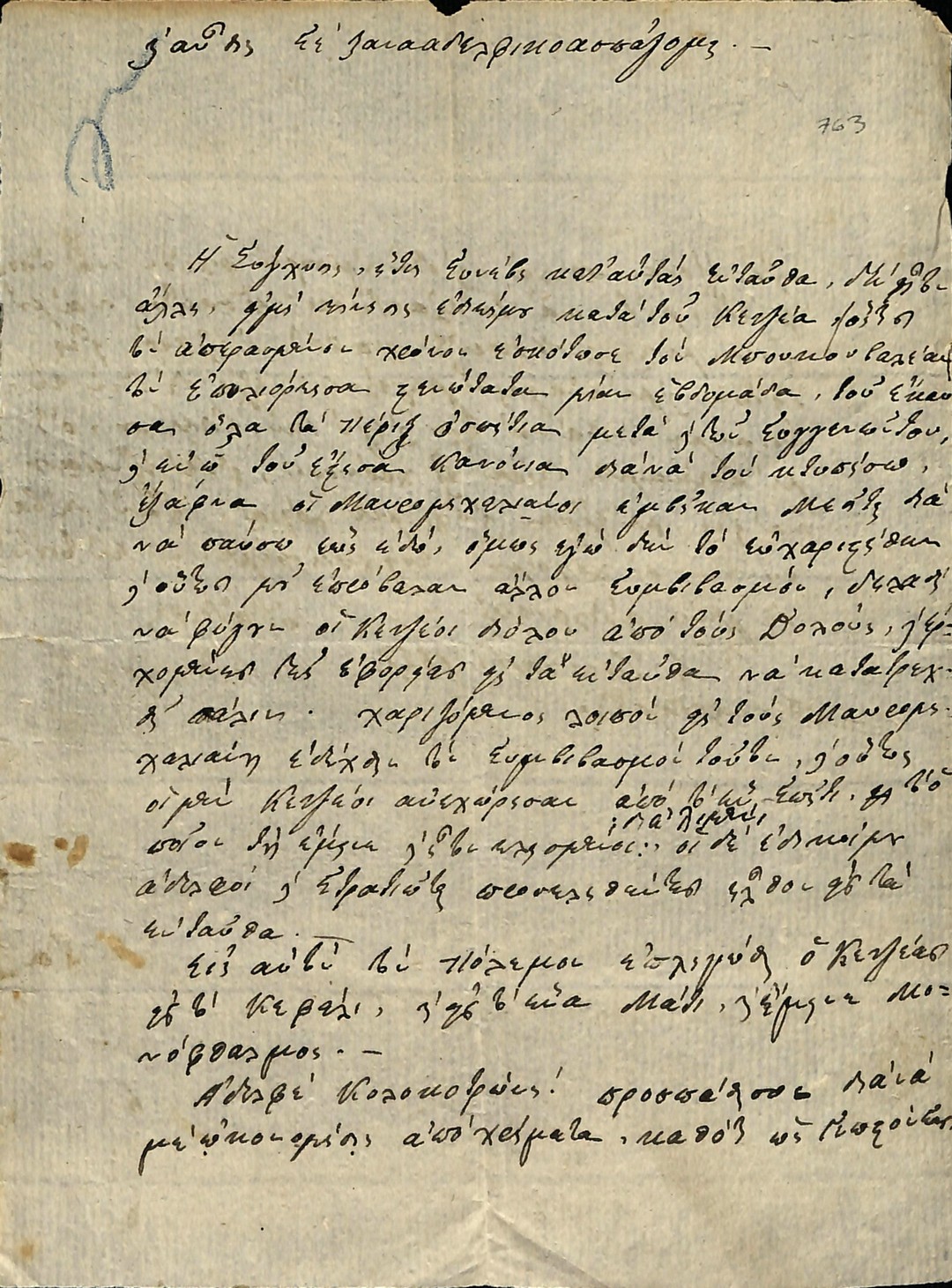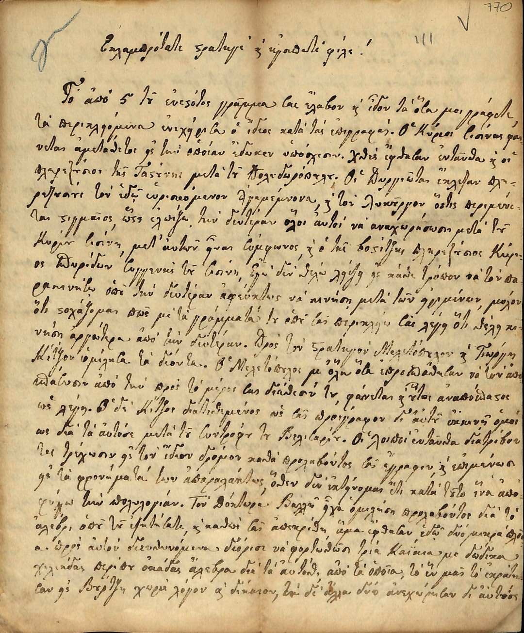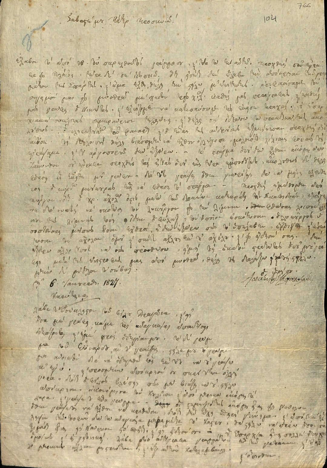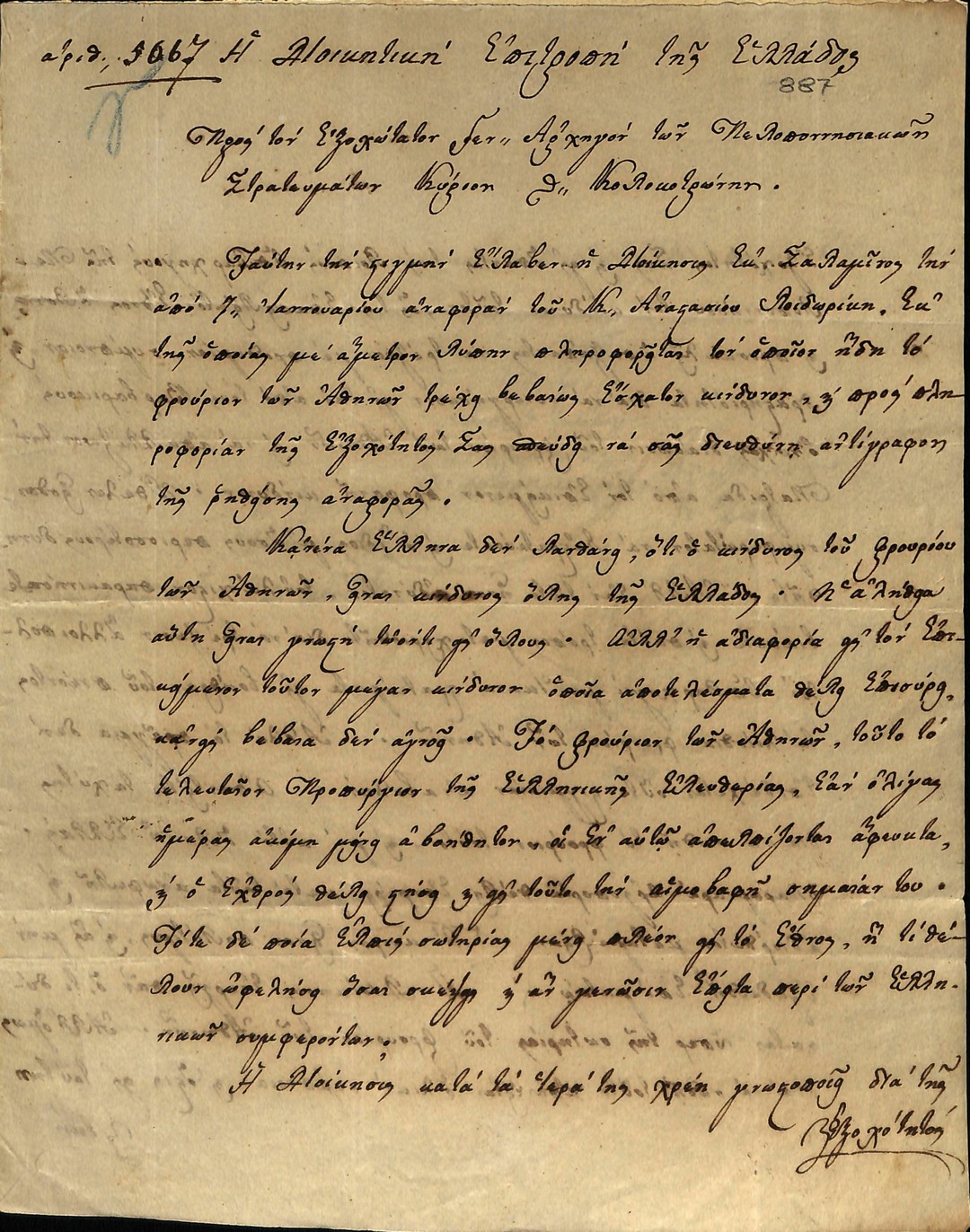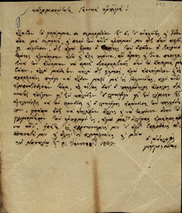 Επιστολη Γεωργιου Σισινη προς Θεοδωρο Κολοκοτρωνη