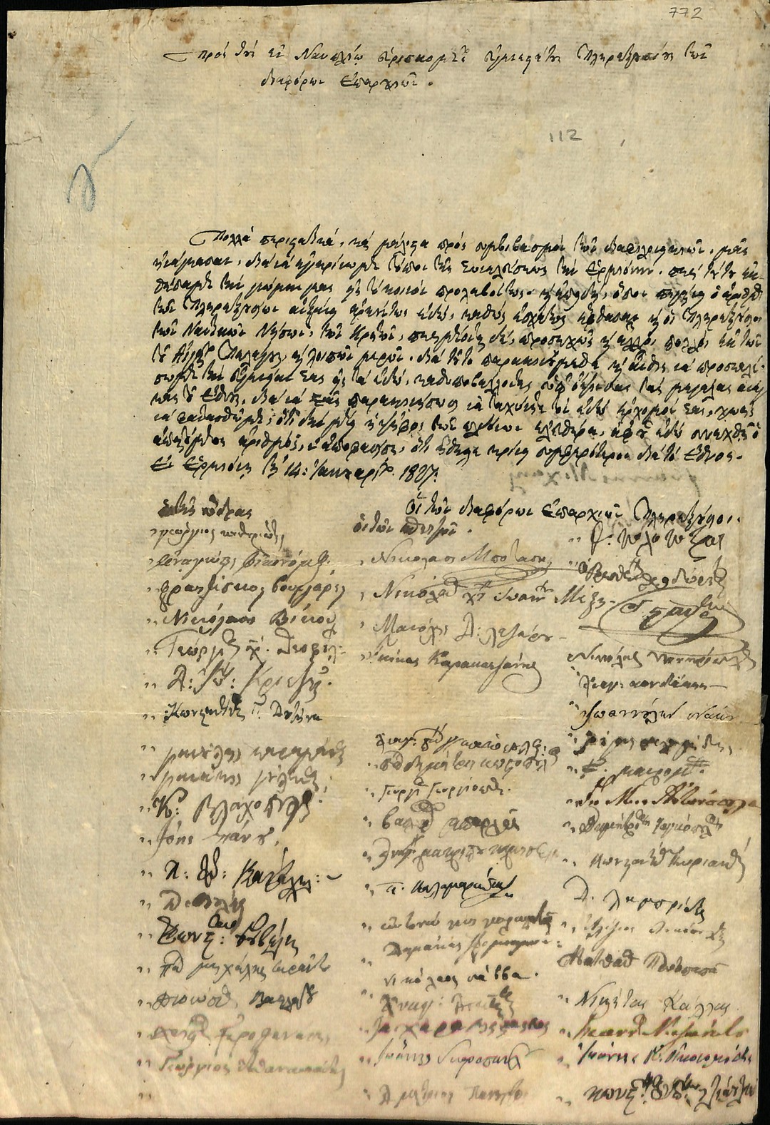 Επιστολη διαφορων επαρχιων προς Θεοδωρο Κολοκοτρωνη