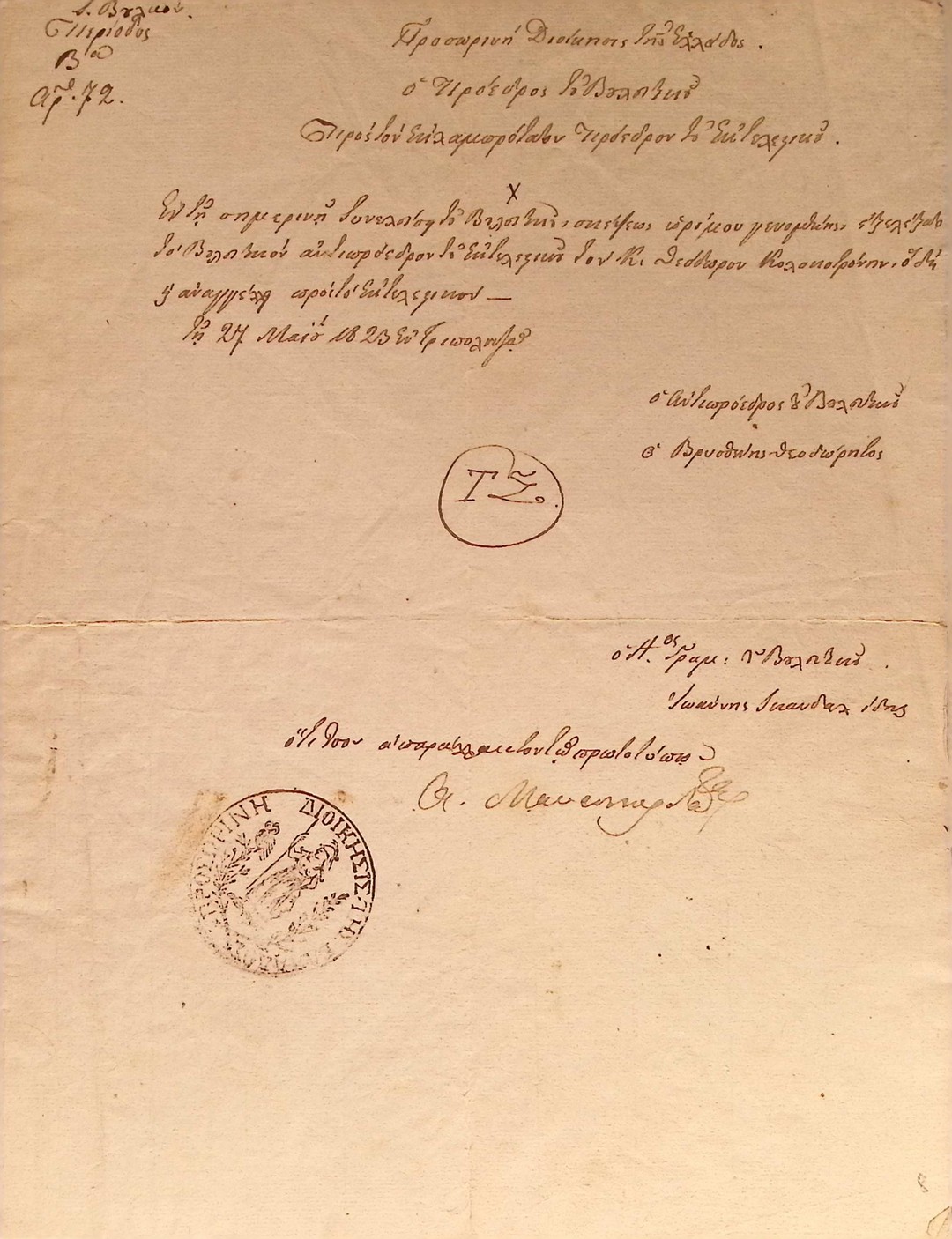 | Τίτλος | Επιστολή Προέδρου Βουλευτικού προς τον Πρόεδρο Εκτελεστικού για την Εκλογή του Θεόδωρου Κολοκοτρώνη στη θέση Αντιπροέδρου του Έκτελεστικου |