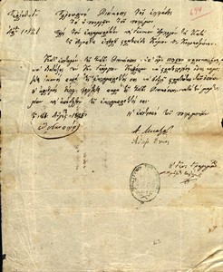 | Τίτλος | Επιστολή Αρχηγού των Σαμίων, Λυκουργου Λογοθετη προς τον Στρατηγό Νικήτα Σταματελόπουλου (Νικηταρά) σε απάντηση του Στρατηγού για τον προβιβασμό του |