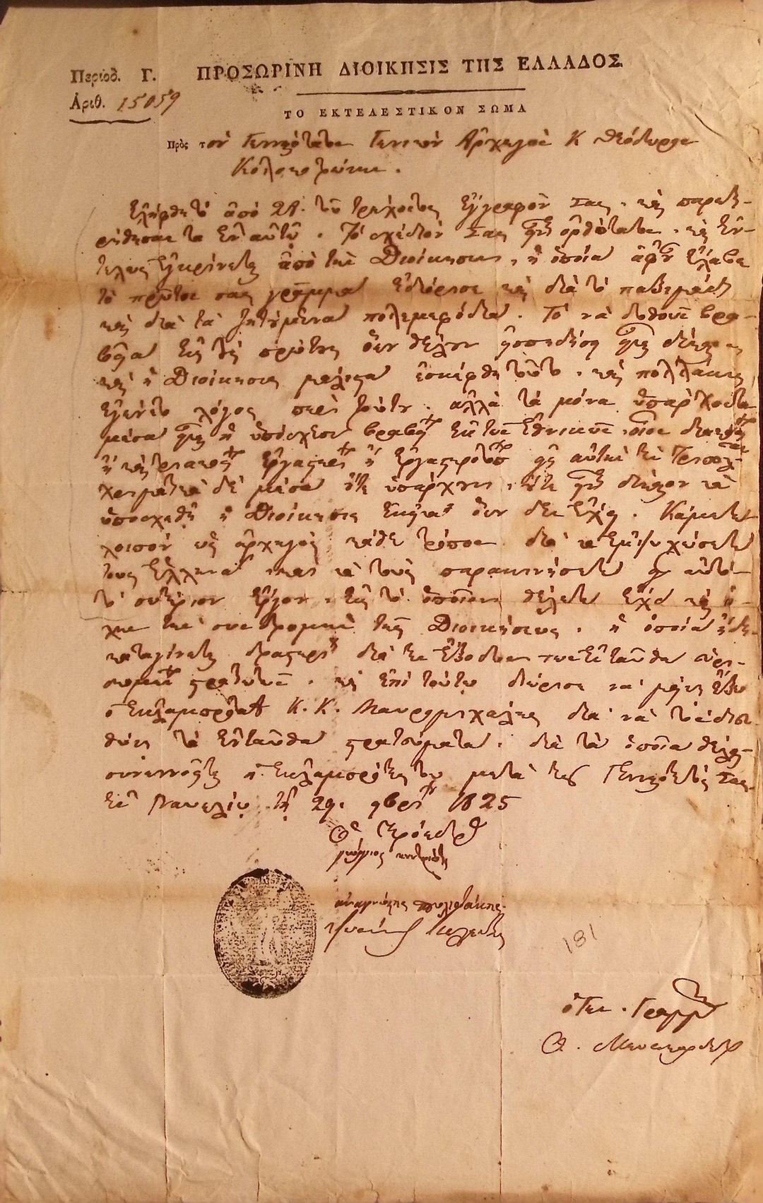 | Τίτλος | Επιστολη Εκτελεστικου προς Θεοδωρο Κολοκοτρωνη |
