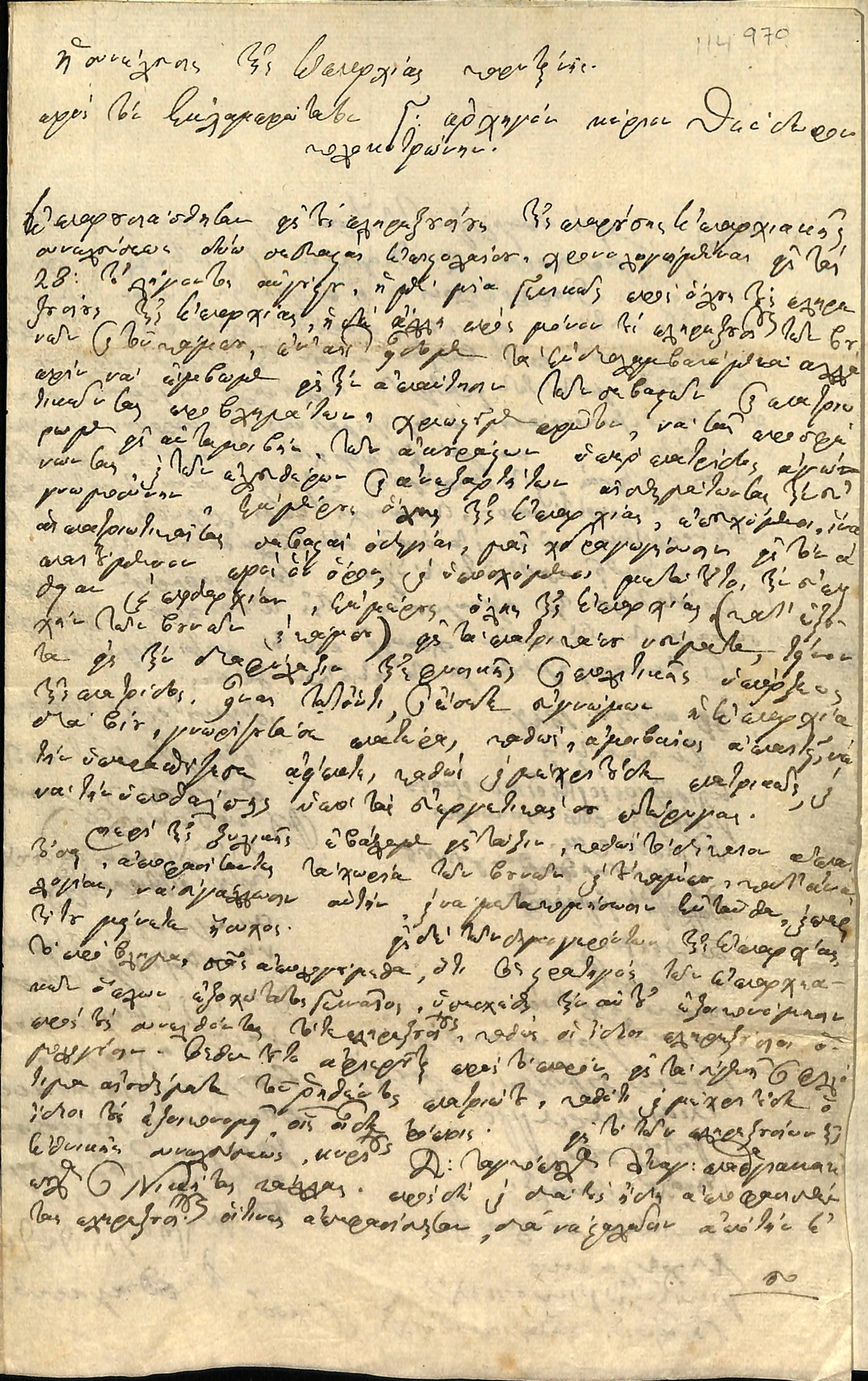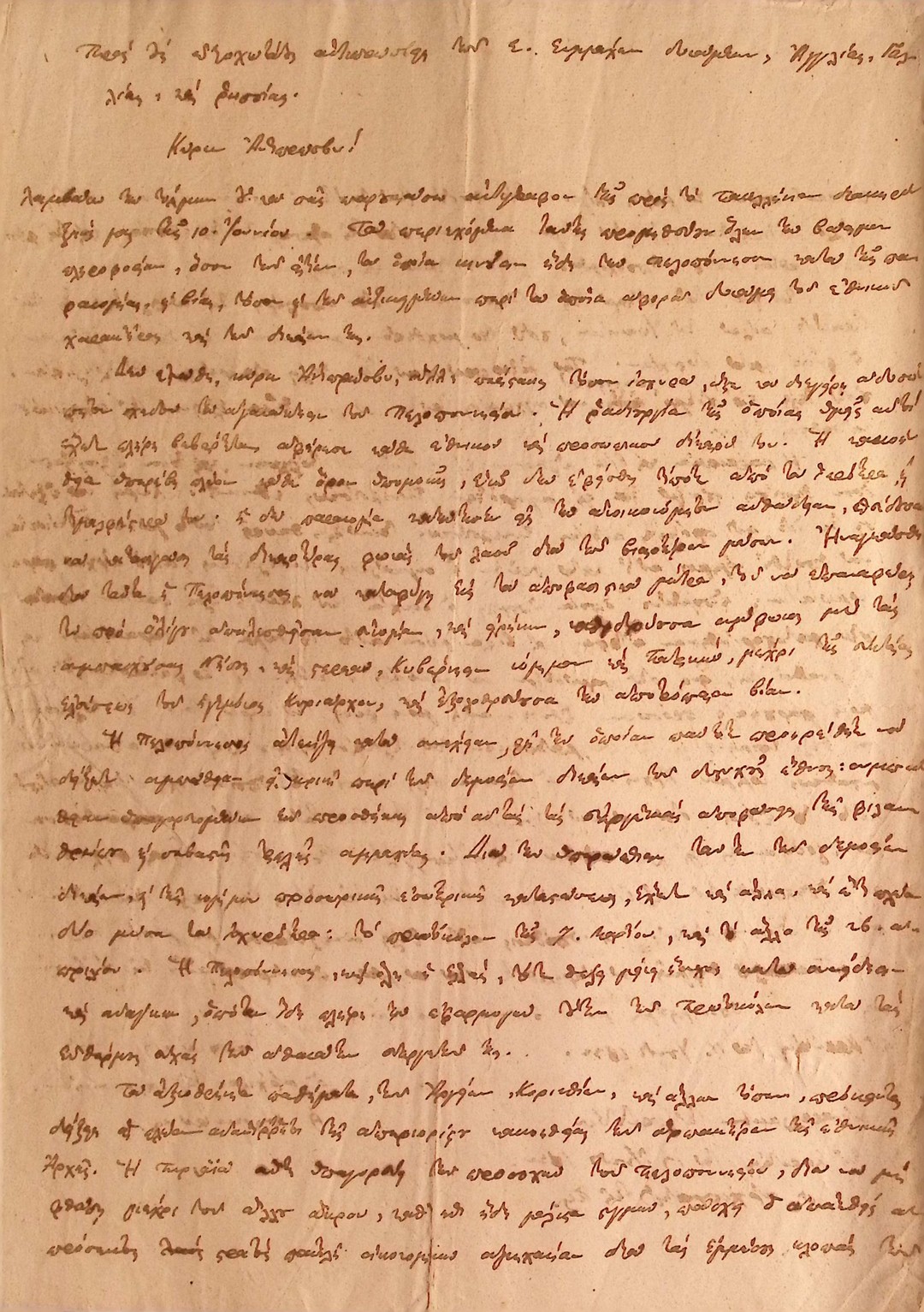 | Τίτλος | Επιστολή Γουβέλλη Έπαρχου Καρύταινας προς Στρατηγό Θεόδωρο Κολοκοτρώνη για τον κίνδυνο του Έθνους και ανάγκη επίσπευσης επιχειρήσεων |