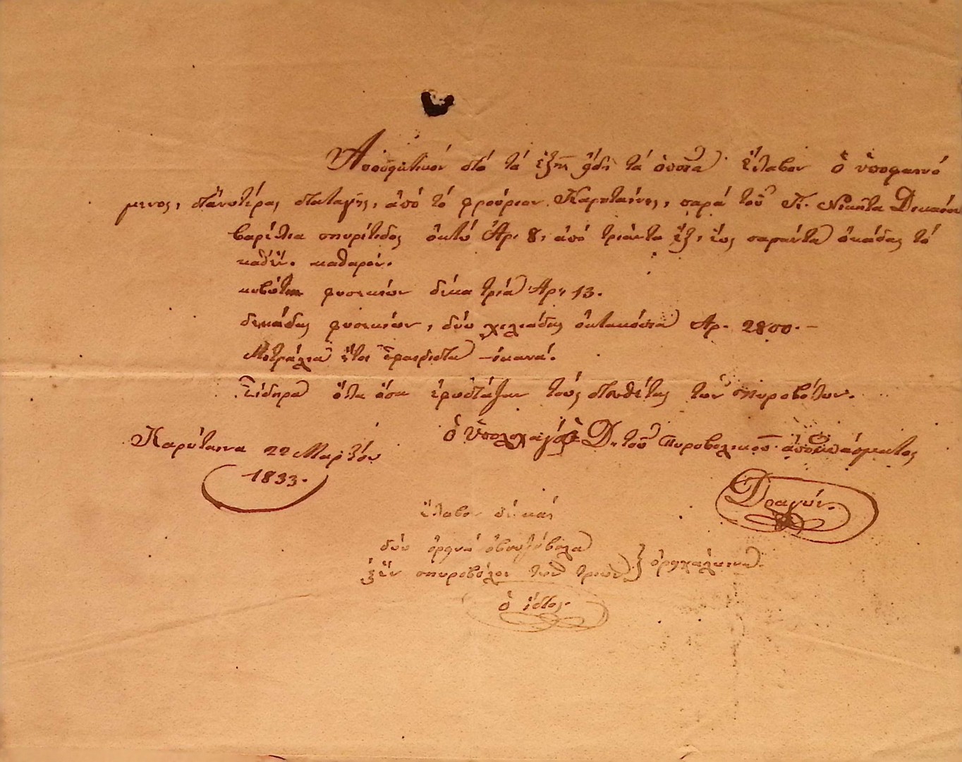 | Τίτλος | Επιστολη δημογεροντων Καρυταινας προς τον Θεοδωρο Κολοκοτρωνη |