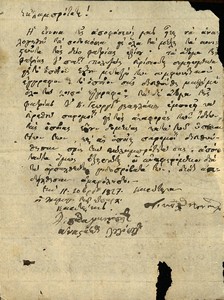 | Τίτλος | εγγραφο συνελευσης επαρχιας Καρυταινας προς Θεοδωρο Κολοκοτρωνη |