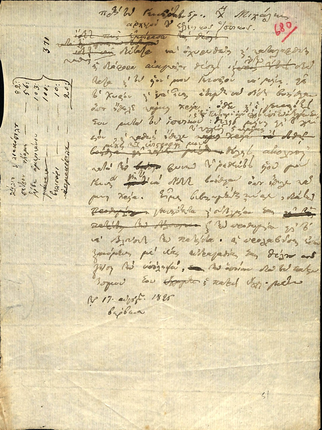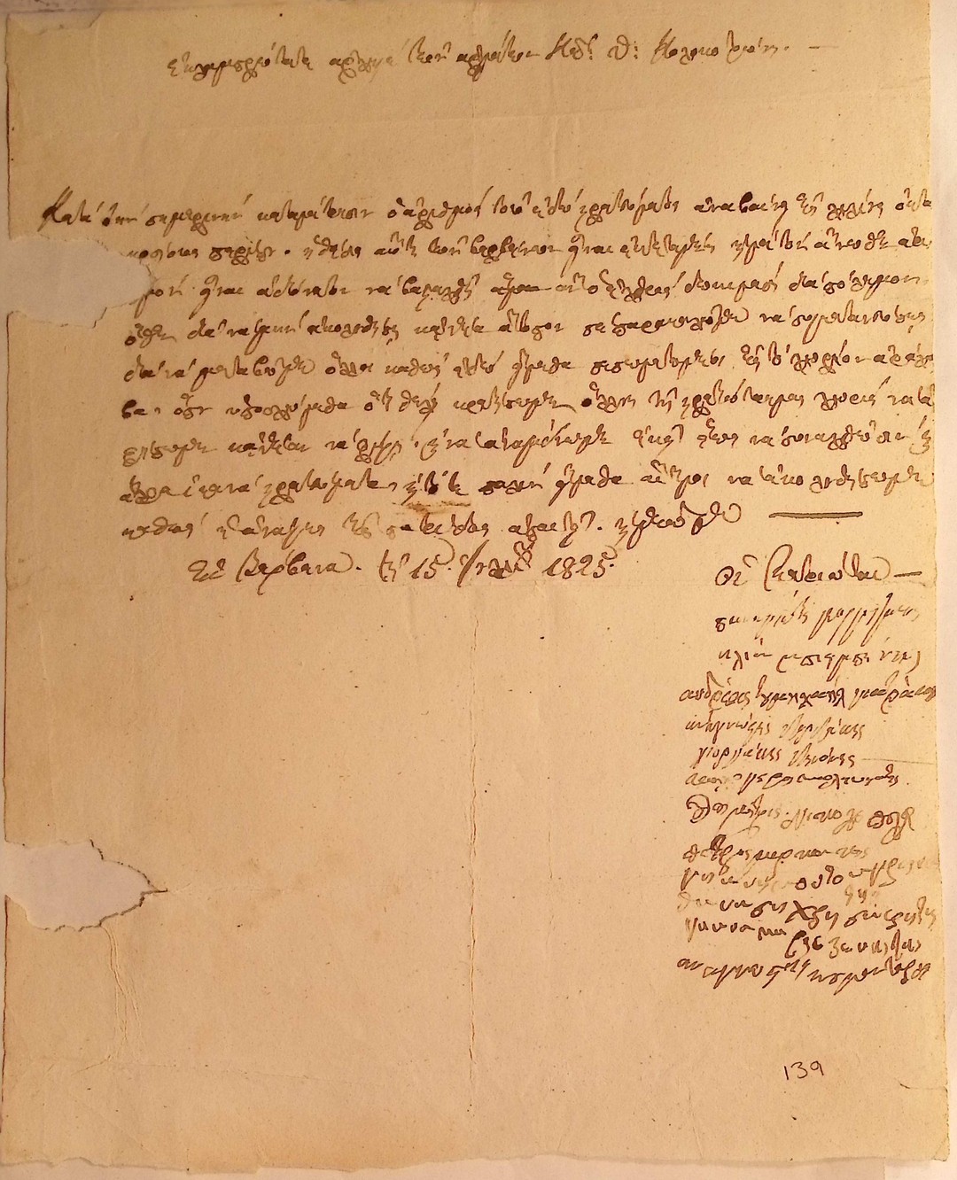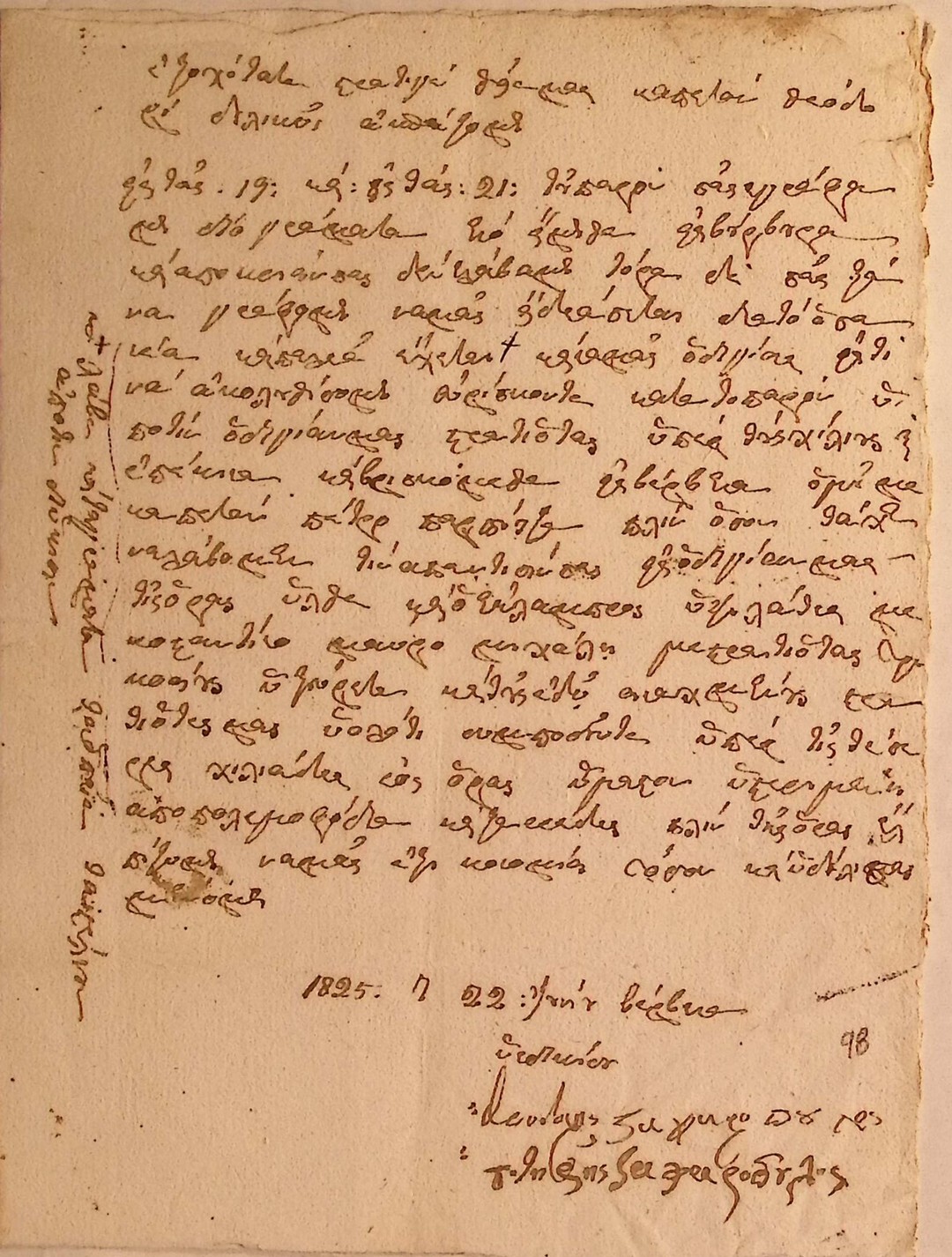 | Τίτλος | Επιστολή Γιωργάκη Μιχαλάκη κ.α οπλαρχηγών προς Θεόδωρο Κολοκοτρώνη με πληροφορίες για κίνηση στρατευμάτων και αίτημα για νέες οδηγίες - διαταγές |