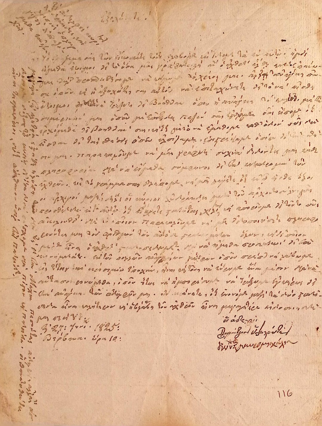 | Τίτλος | Επιστολη Πετρου Μερκατση κ.α προς Θεοδωρο Κολοκοτρωνη σχετικα με τακτικη υποχωρηση απο τα Βερβενα στο χωριο Αραχοβα αναμενοντας ενισχυσεις. |