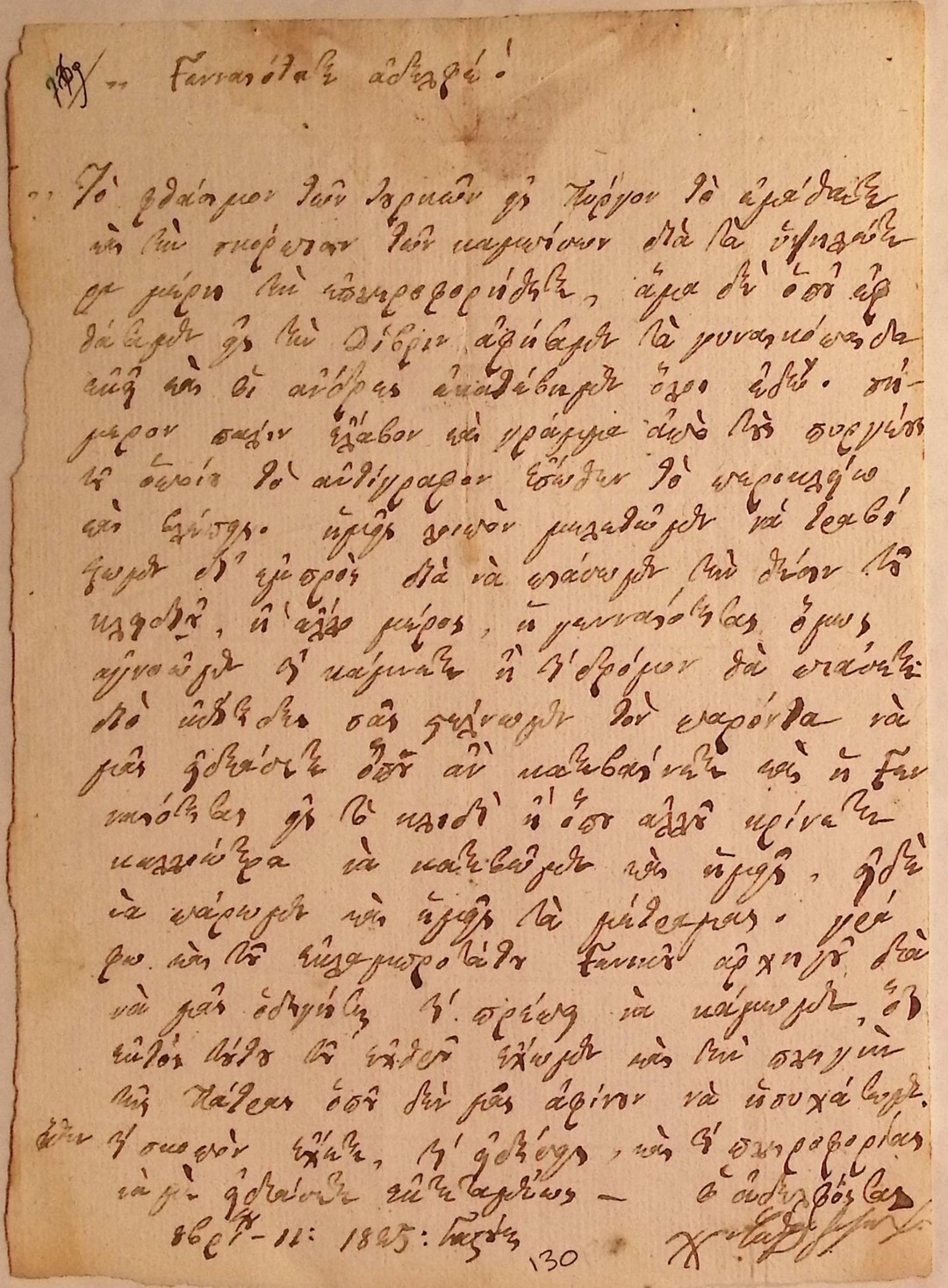 | Τίτλος | Επιστολη Γεωργιου Σισινη προς Θεοδωρο Κολοκοτρωνη αναφορικα με αποστολη χρηματικης ενισχυσης. |