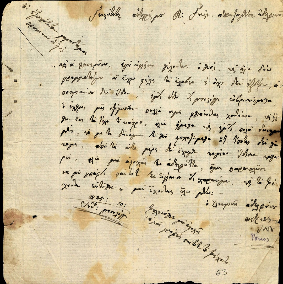 | Τίτλος | Επιστολή δημογεροντίας Μεσολογγίου. |