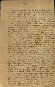 | Τίτλος | Επιστολή Νικόλαου Γιατράκου προς Θεόδωρο Κολοκοτρώνη για την απελευθέρωση του Παναγιώτη Γιατράκου και τραυματισμό του Γεωργάκη Γιατράκου (..δεν περιγράφονται τι τραβά ετούτος ο τόπος από τους Μανιάτες) |