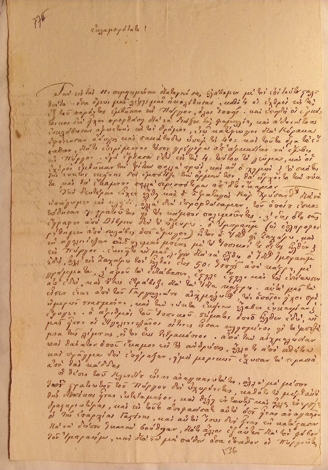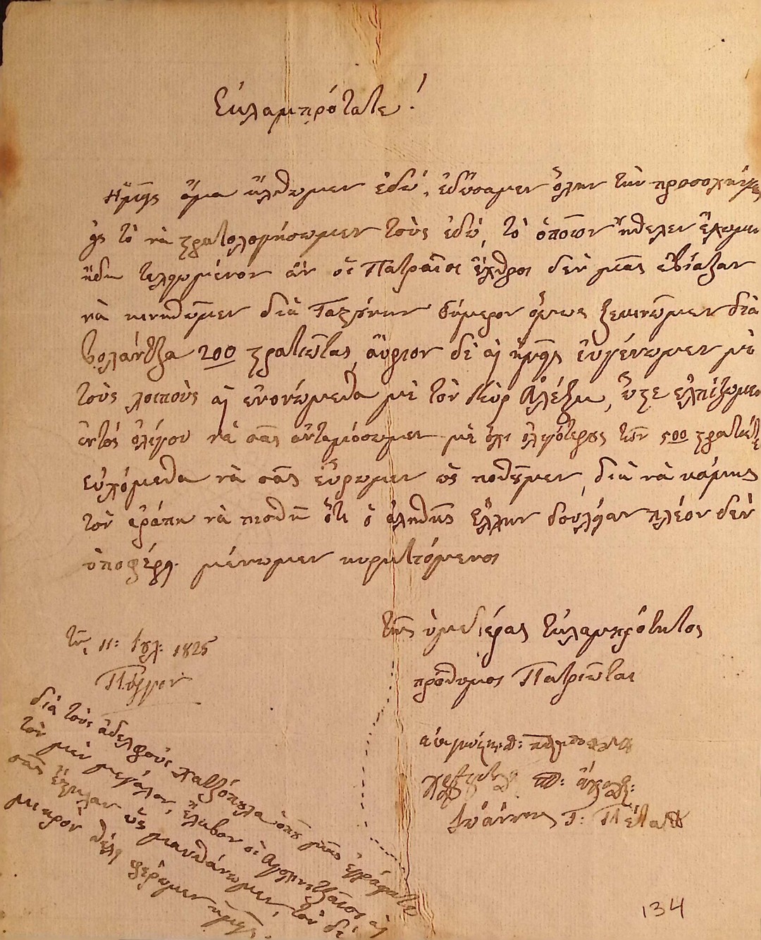 | Τίτλος | Επιστολη Παπασταθοπουλου προς Θ.Κολοκοτρωνη σχετικα με στρατολογηση νεων στρατιωτων και ενωσης του με Κολοκοτρωνη. |