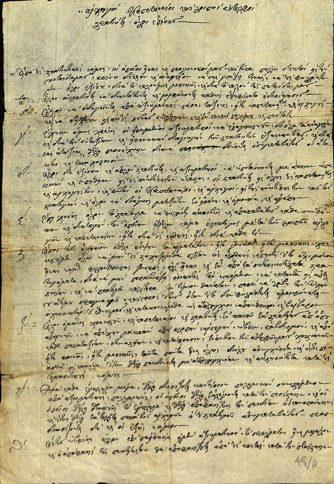 | Τίτλος | Επιστολή Θεόδωρου Κολοκοτρώνη προς Δημήτριο Υψηλάντη και Νικήτα Σταματελόπουλο (Νικηταρά) περί αναγκών στράτευσης των Ελλήνων |