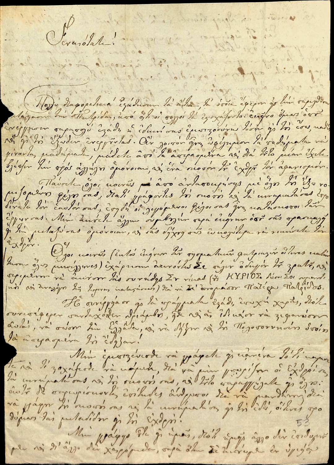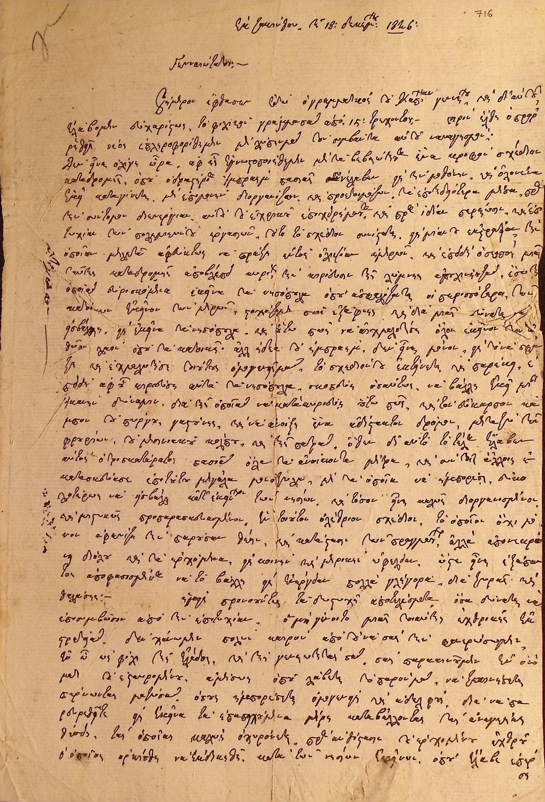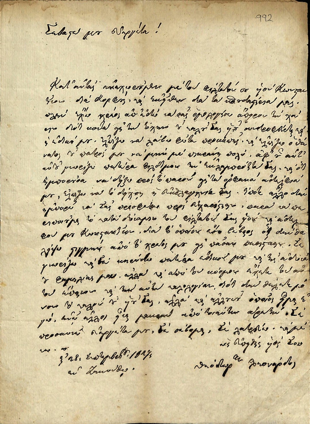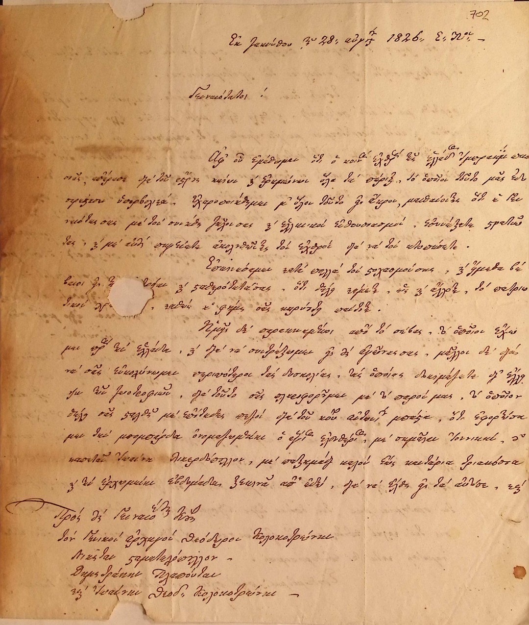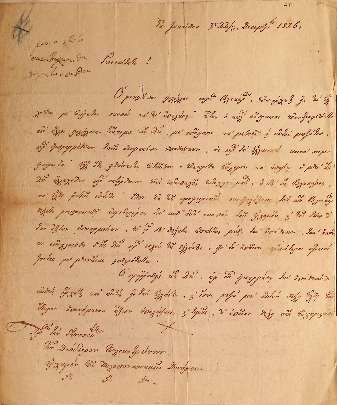 | Τίτλος | Επιστολή Διονύσιου Ρώμα (4 σελ.) προς Θεόδωρο Κολοκοτρώνη [.. Οι πλέον επικίνδυνοι εχθροί είναι πάντοτε οι οικιακοί] |