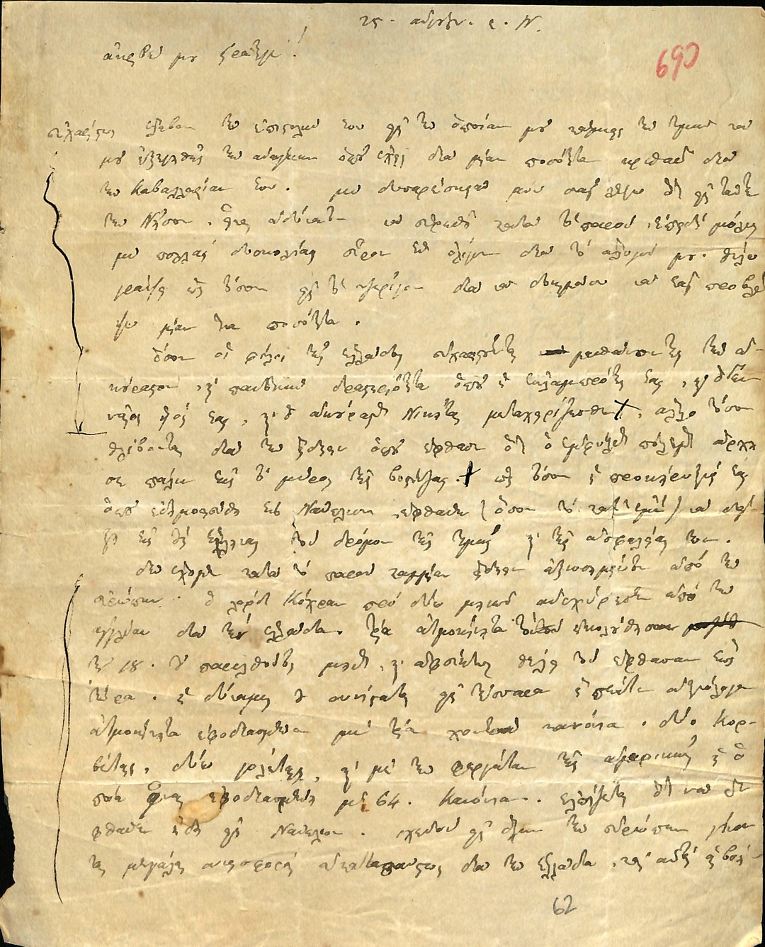 | Τίτλος | Επιστολη Ρωμα προς Θ.Κολοκοτρωνη εφιστωντας του τη προσοχη σχετικα με μηχανοραφιες μελων της κυβερνησης. |