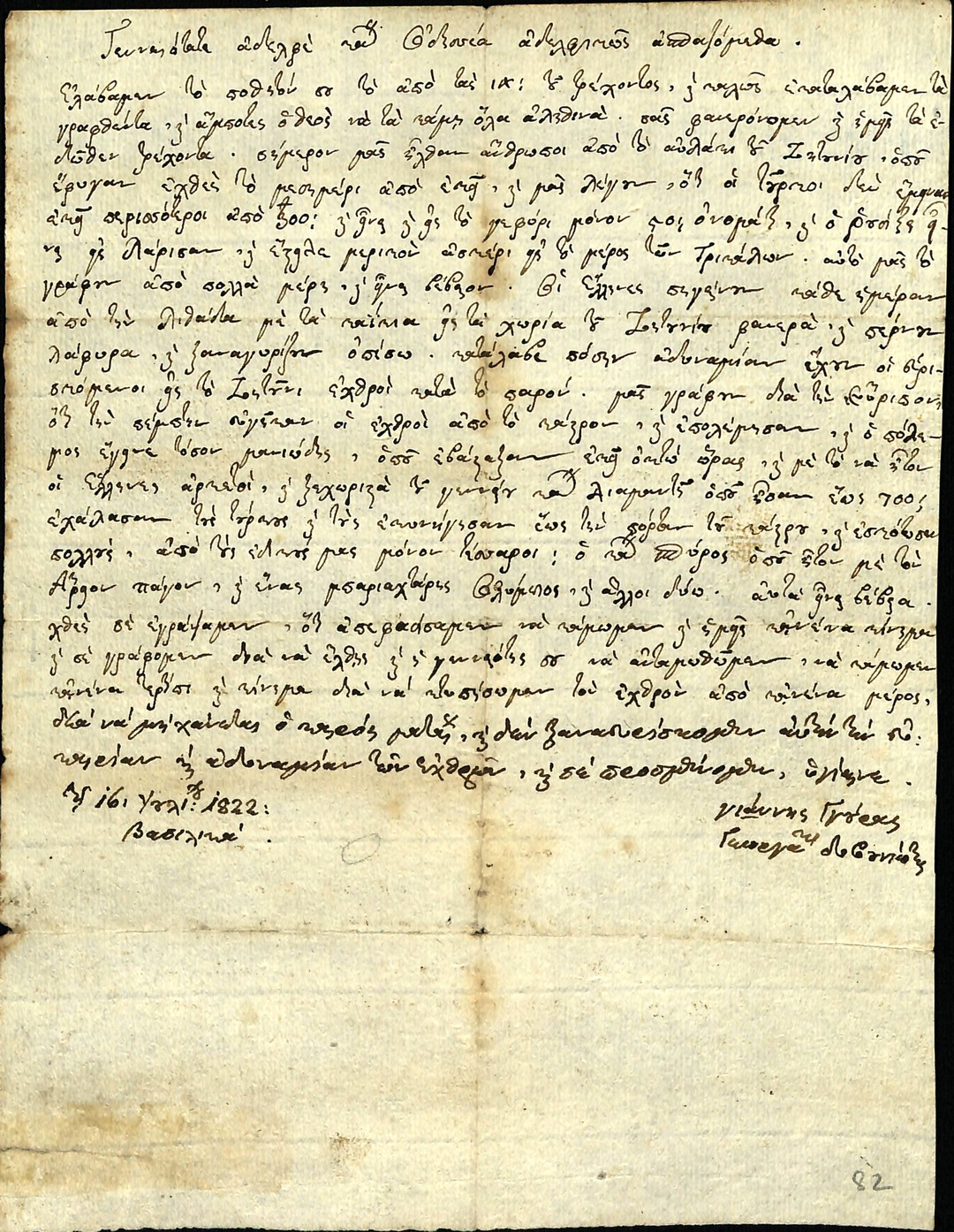 | Τίτλος | Επιστολή Υπουργού Πολέμου προς Στρατηγό Νικήτα Σταματελόπουλο (Νικηταρά) για την αποστολή 1000 επιπλέον νέων στρατιωτών υπό τις διαταγές του |