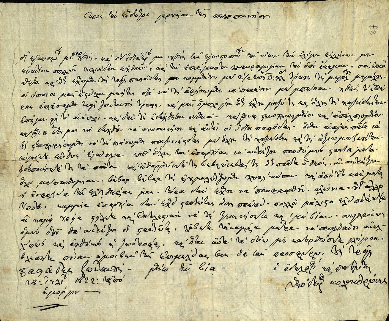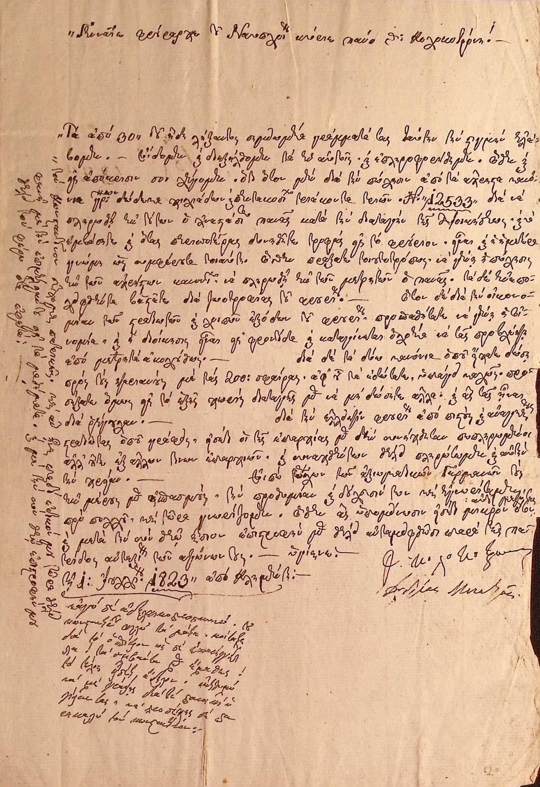 | Τίτλος | Επιστολή Δημήτρη Πλαπούτα προς Αρχιστράτηγο Θεόδωρο Κολοκοτρώνη με κρίσιμες πληροφορίες και νεα από το Φρούριο του Ναυπλίου |