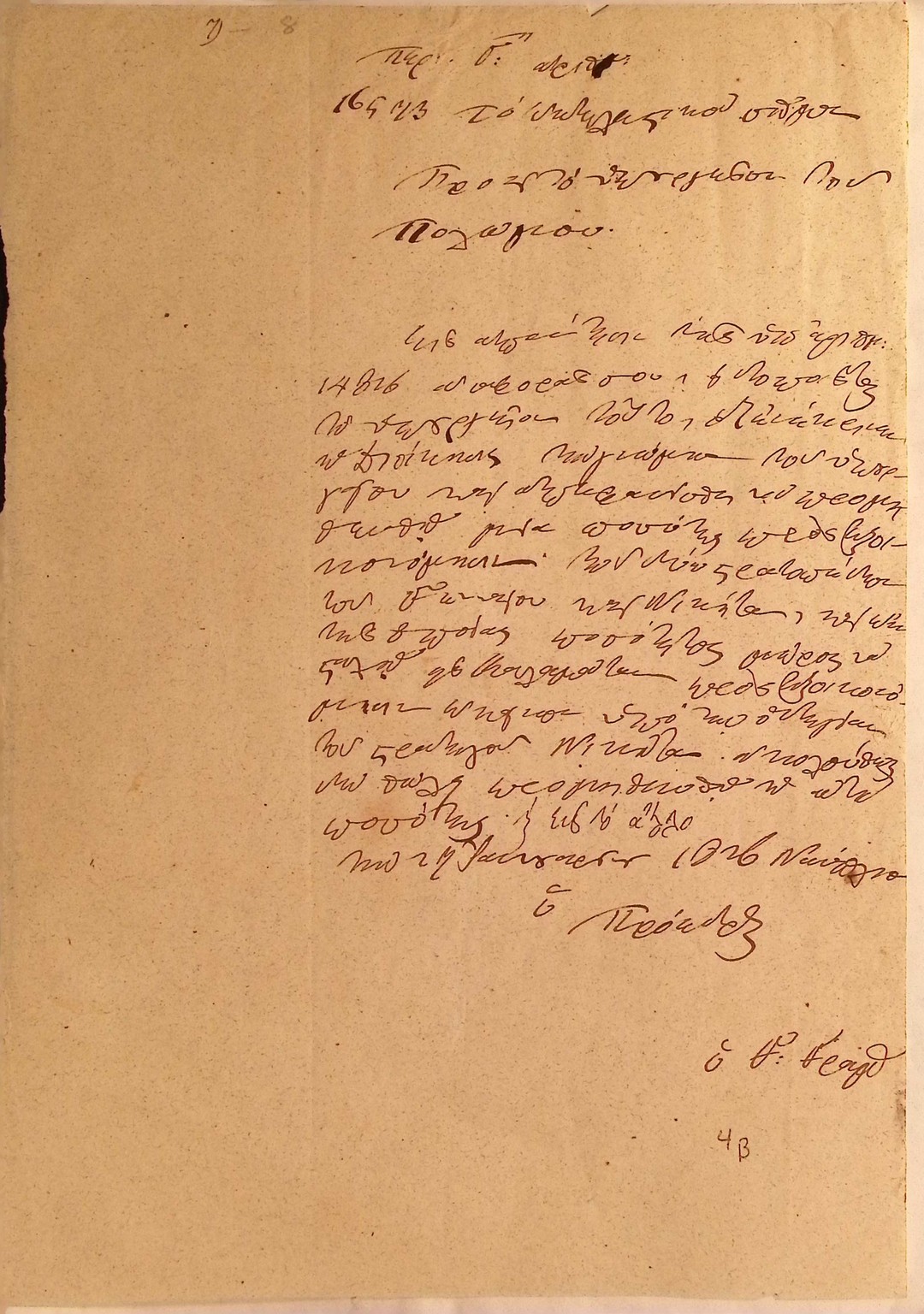 | Τίτλος | Επιστολή παραπόνων κατοίκων χωρίων Λιοδώρας προς Αντιπρόεδρο Εκτελεστικού Θεόδωρο Κολοκοτρώνη |