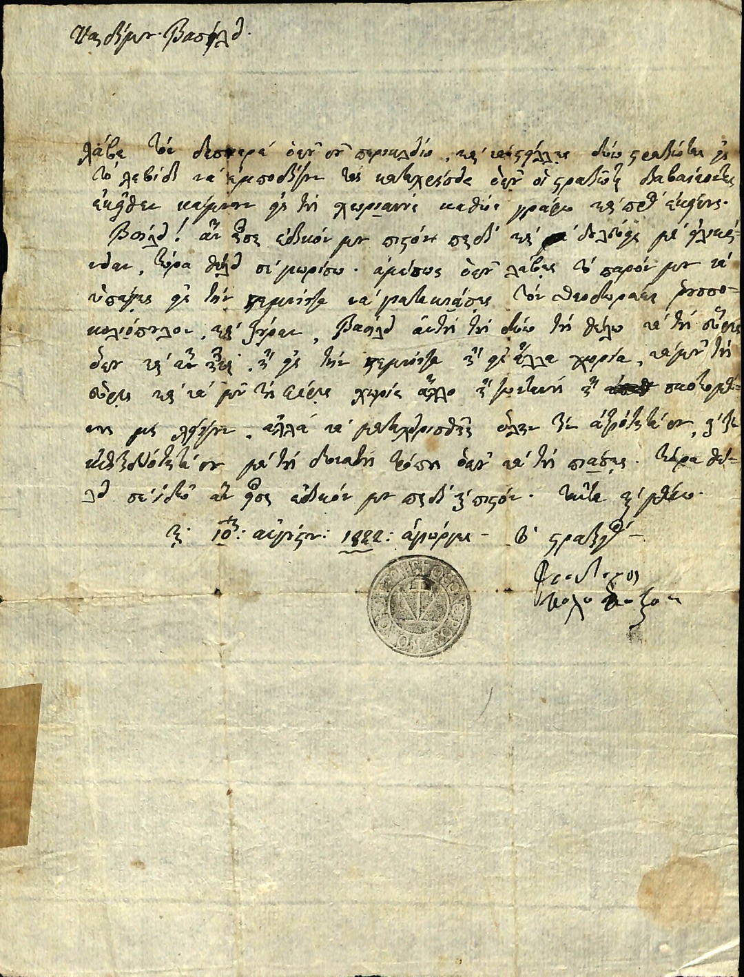 | Τόπος σύνταξης | Τριπολιτσὰ |