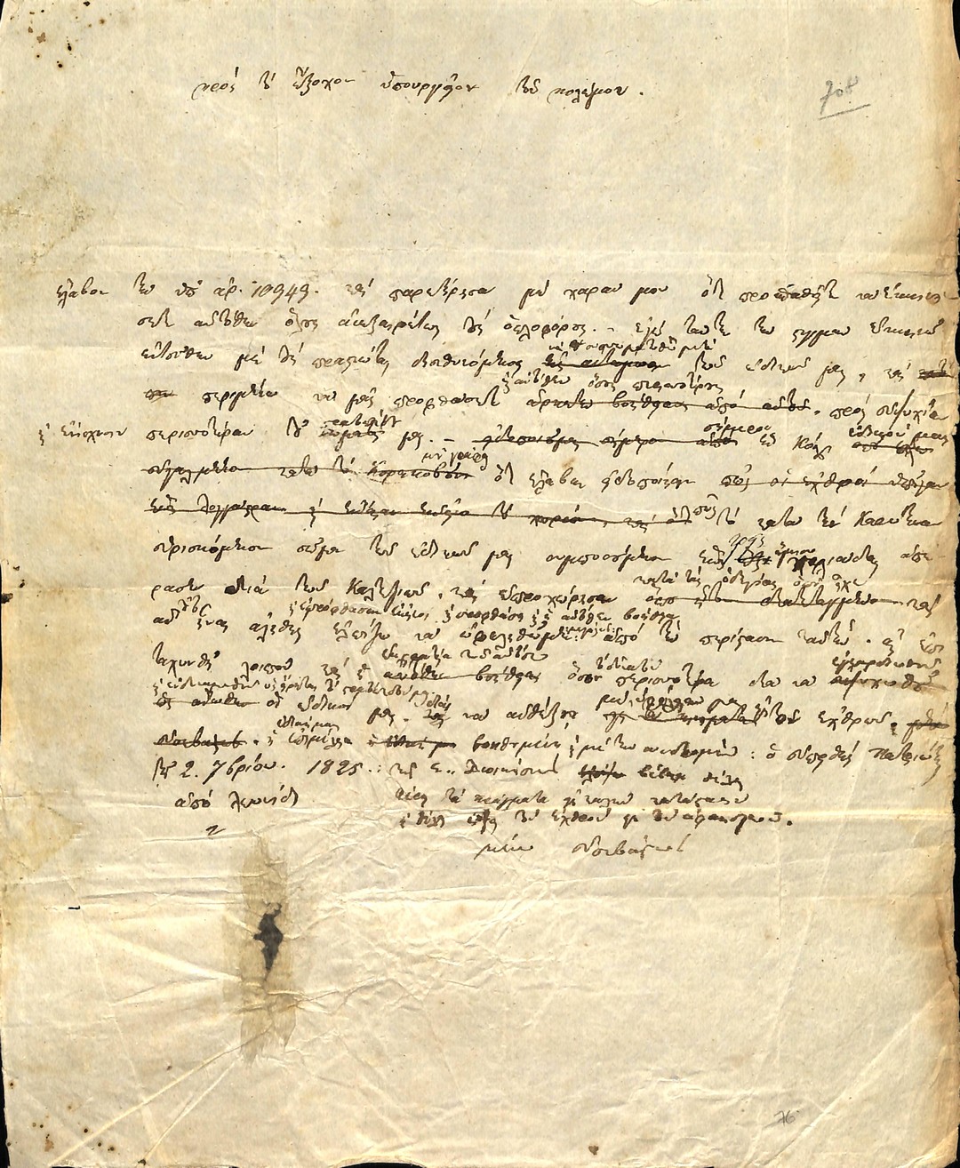 | Τίτλος | Επιστολή Αρχιστρατήγου Πελοποννήσου Θεόδωρου Κολοκοτρώνη προς Οδυσσέα Ανδρούτσο με πληροφορίες για άφιξη νέων Τουρκικών δυνάμεων και έκκληση για ομόνοια μεταξύ των Αγωνιστών. |