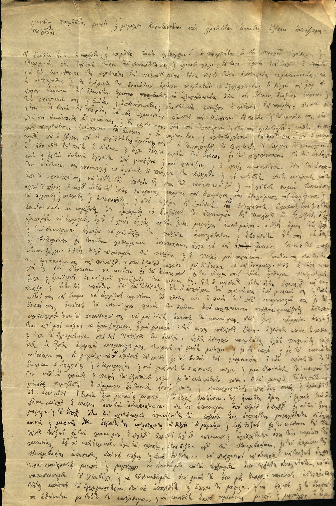 | Τίτλος | Επιστολή πρόσκληση Στρατηγού Θεόδωρου Κολοκοτρώνη προς χωριά Λιοδώρας Αρκαδίας για στράτευση στον Αγώνα |