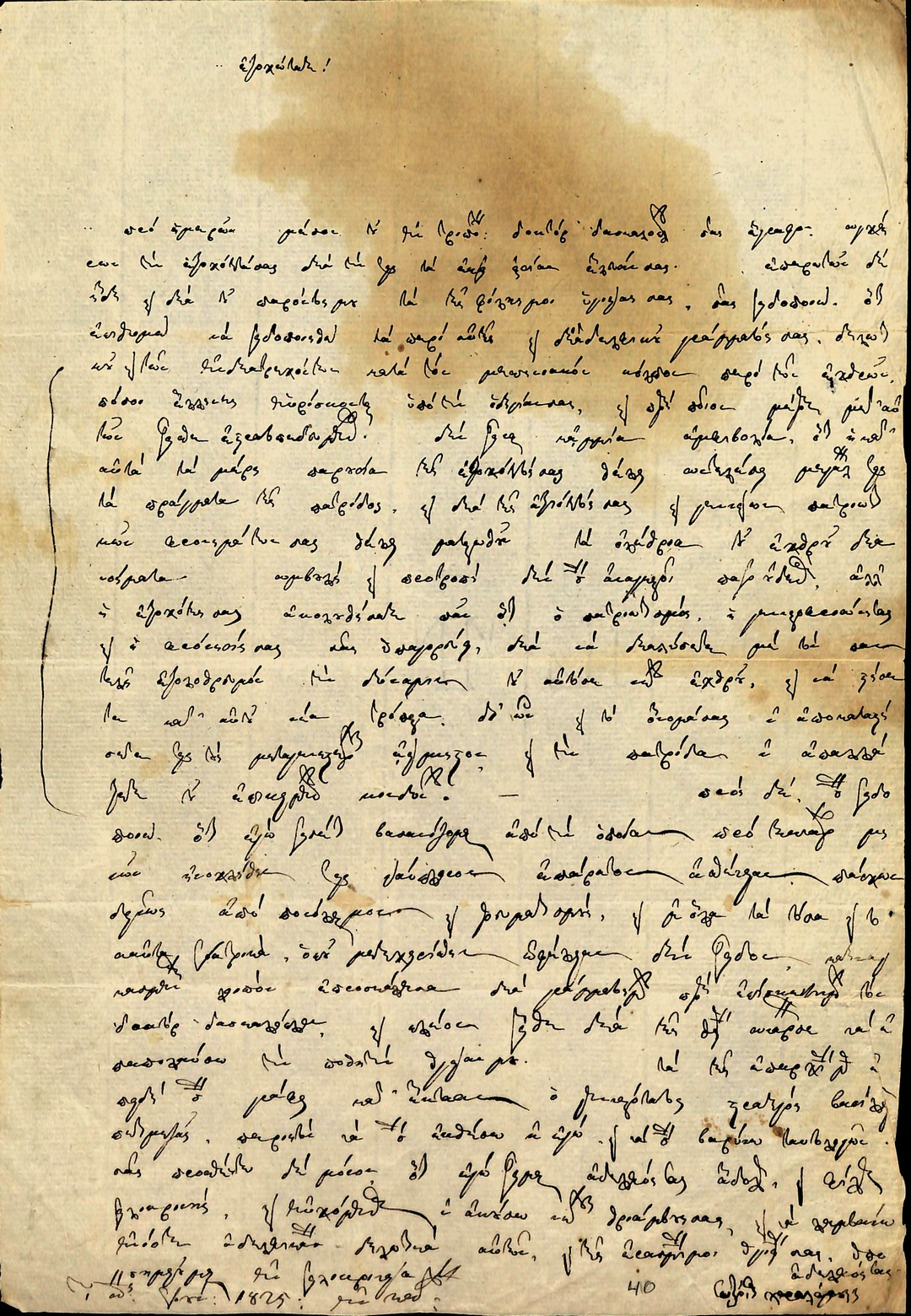 | Τίτλος | Επιστολη Χαραλαμπη προς Θεοδωρο Κολοκοτρωνη σχετικα με αρνητικη εκβαση μαχης στην Επανω Χρεπα και Βαλτετζι με τους Αραβες λογω δειλιας στρατιωτων. |