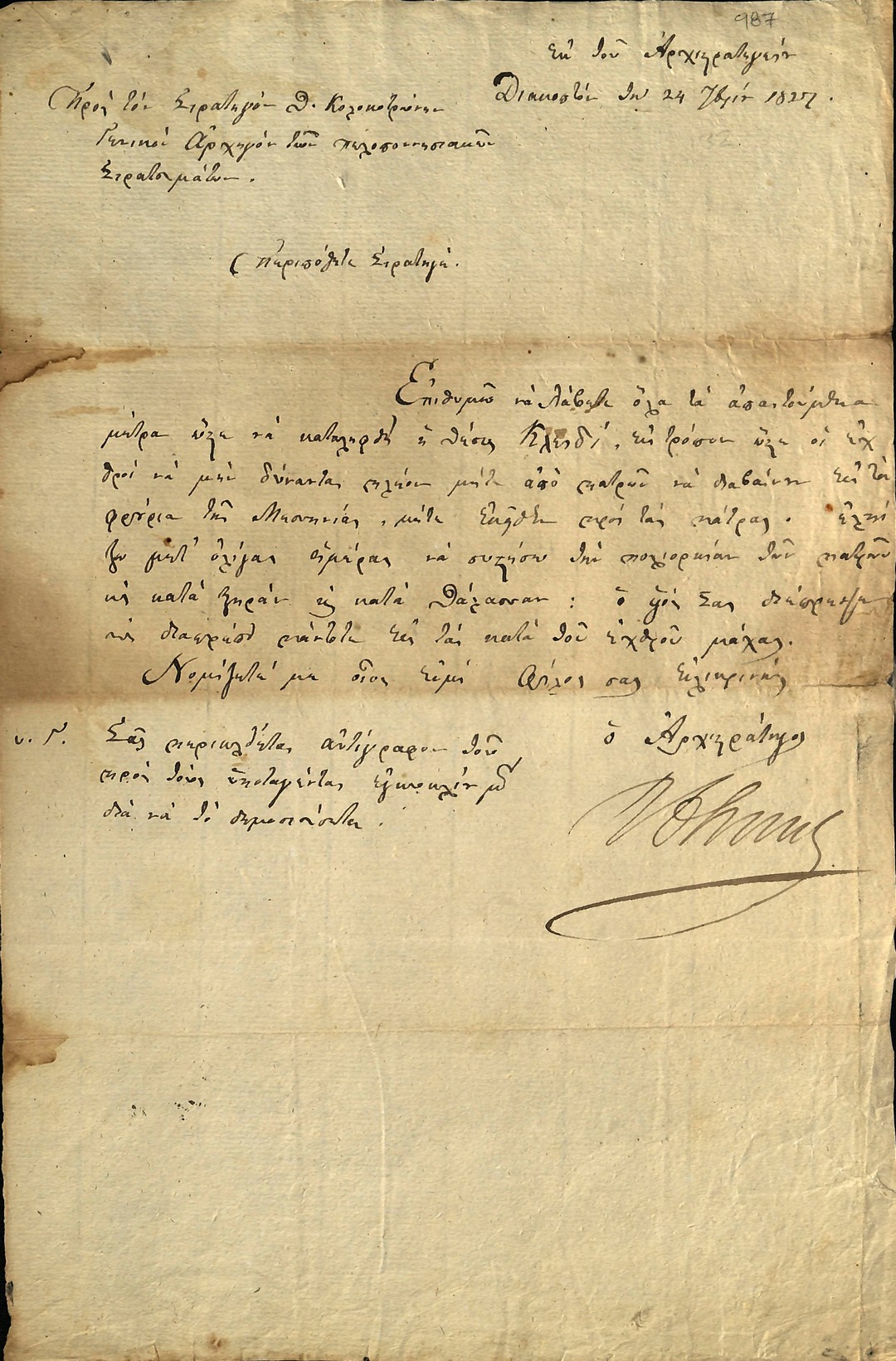 | Τίτλος | Επιστολη Αρχιστρατηγου Richard Church προς Θεοδωρο Κολοκοτρωνη - διορισμος Κολοκοτρωνη ως Αρχηστρατηγου Πελοποννησου |