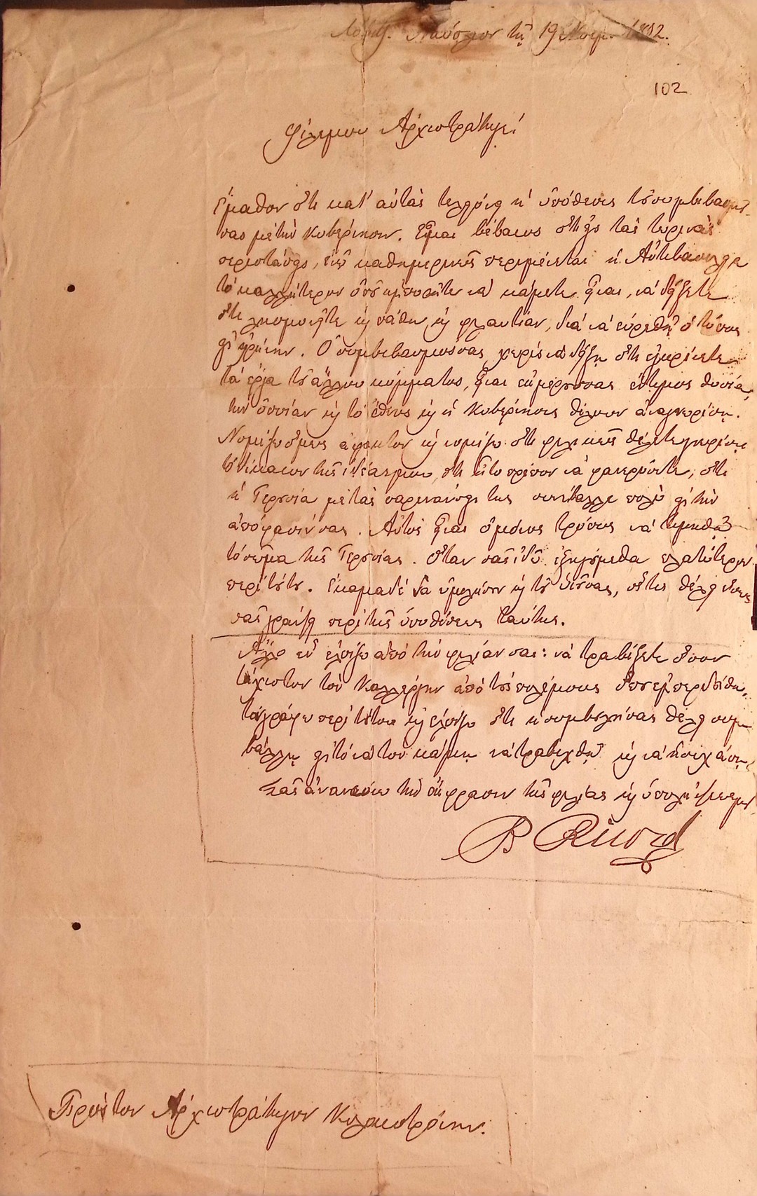 | Τίτλος | Επιστολη Ρικορδ προς Θεοδωρο Κολοκοτρωνη - αναφορικα με επιολη ταξης στο Αργος |
