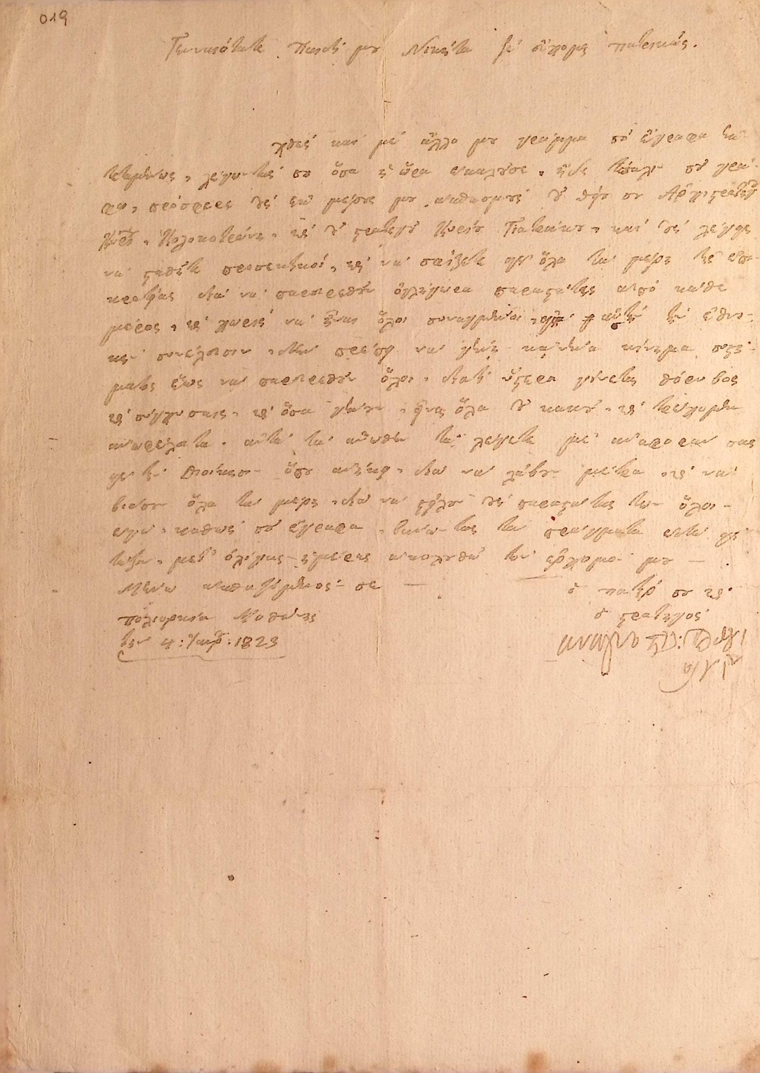 | Τίτλος | Επιστολή Στρατηγού Αναγνώστη Παπαγεωργίου προς τον Στρατηγό Νικήτα Σταματελόπουλου (Νικηταρά) για την καθυστέρηση έναρξης της Εθνοσυνέλευσης έως της έλευσης του συνόλου των αντιπροσώπων |