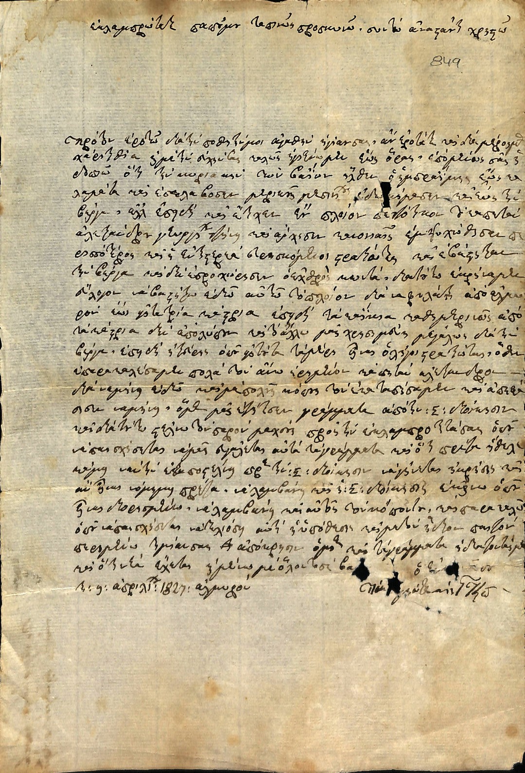 | Τίτλος | Επιστολη Γεωριγιου Μαυρομιχαλη κ.α προς Θεοδωρο Κολοκοτρωνη - αναφορικα με σχεδια του εχθρου και αποβασης στο Δειρο |