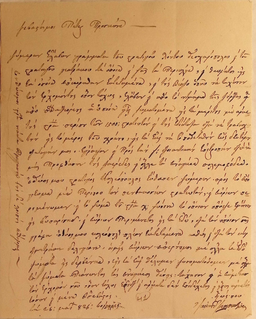 | Τίτλος | Επιστολη Γενναιου Κολοκοτρωνη προς Θεοδωρο Κολοκοτρωνη αναφορικα με αποστολη του στις Σπετσες |