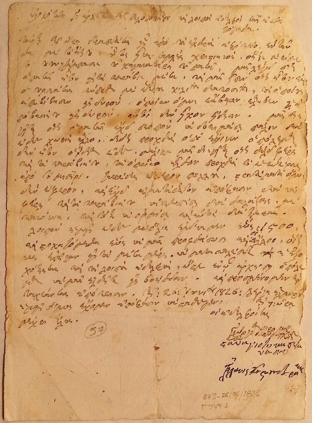 | Τίτλος | Επιστολη Γεωριγιου Μαυρομιχαλη κ.α προς Θεοδωρο Κολοκοτρωνη - αναφορικα με σχεδια του εχθρου και αποβασης στο Δειρο |