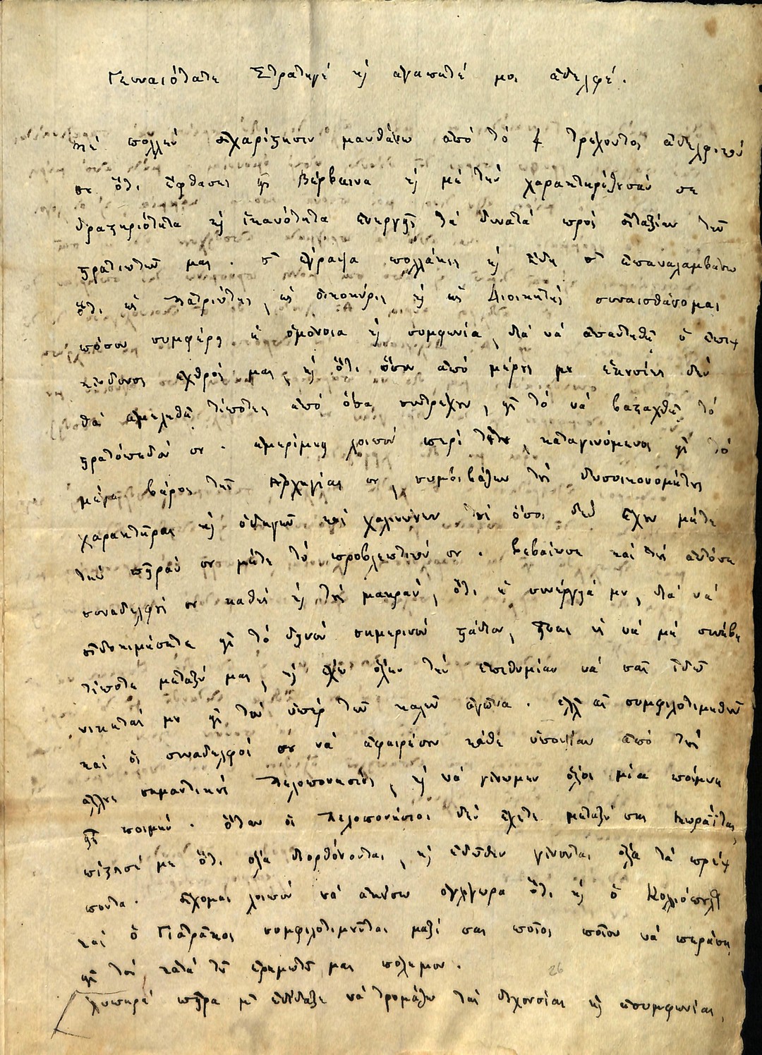 | Τίτλος | Επιστολη Γεωργιου Κουντουριωτη προς Θεοδωρο Κολοκοτρωνη να καρτησει ενωμενο το στρατευμα και ανωτεροτητα στις μεχρι τωρα αντενεργειες ορισμενων. |