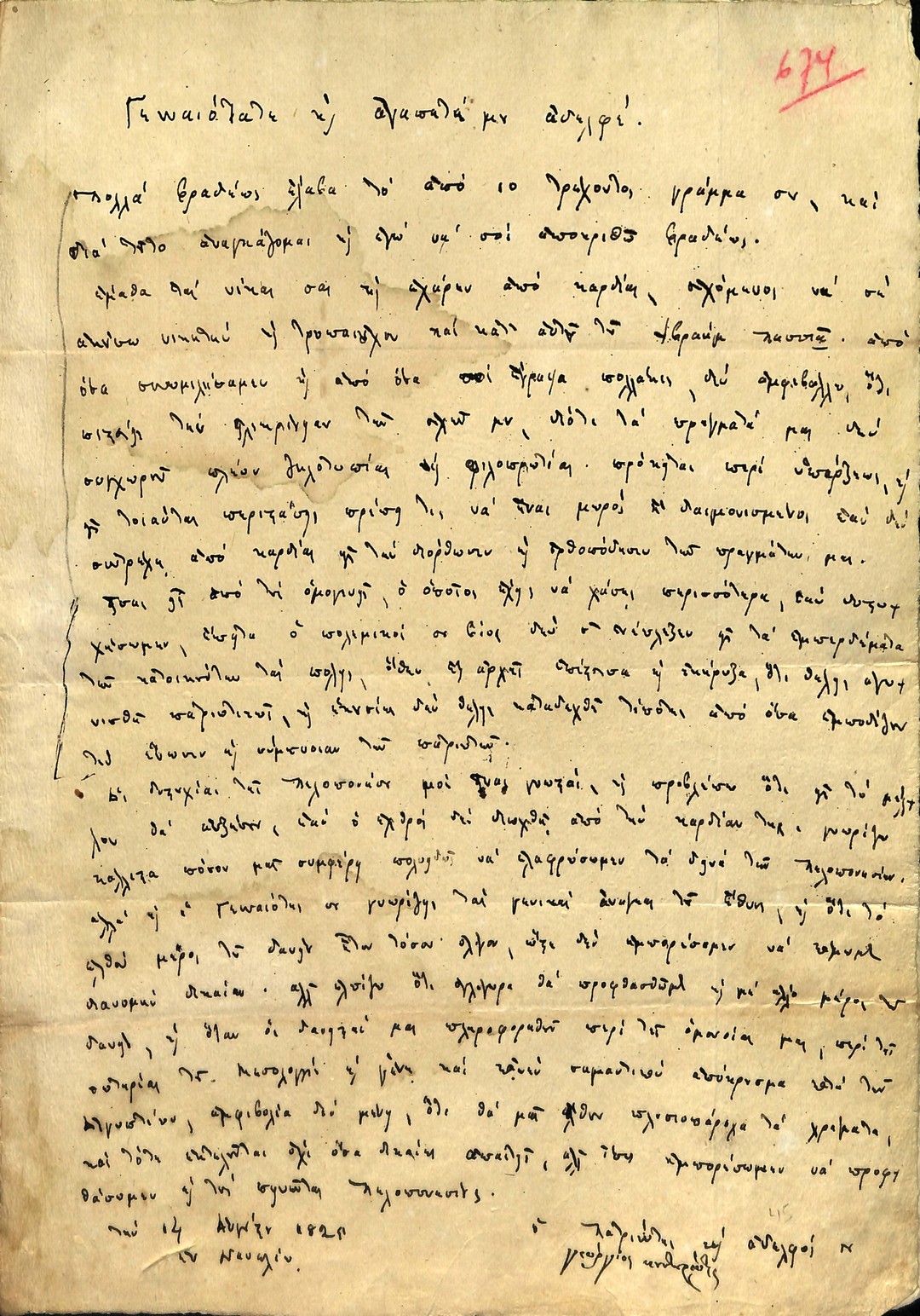 | Χαρακτηρισμός Περιεχομένου | Επιστολή |