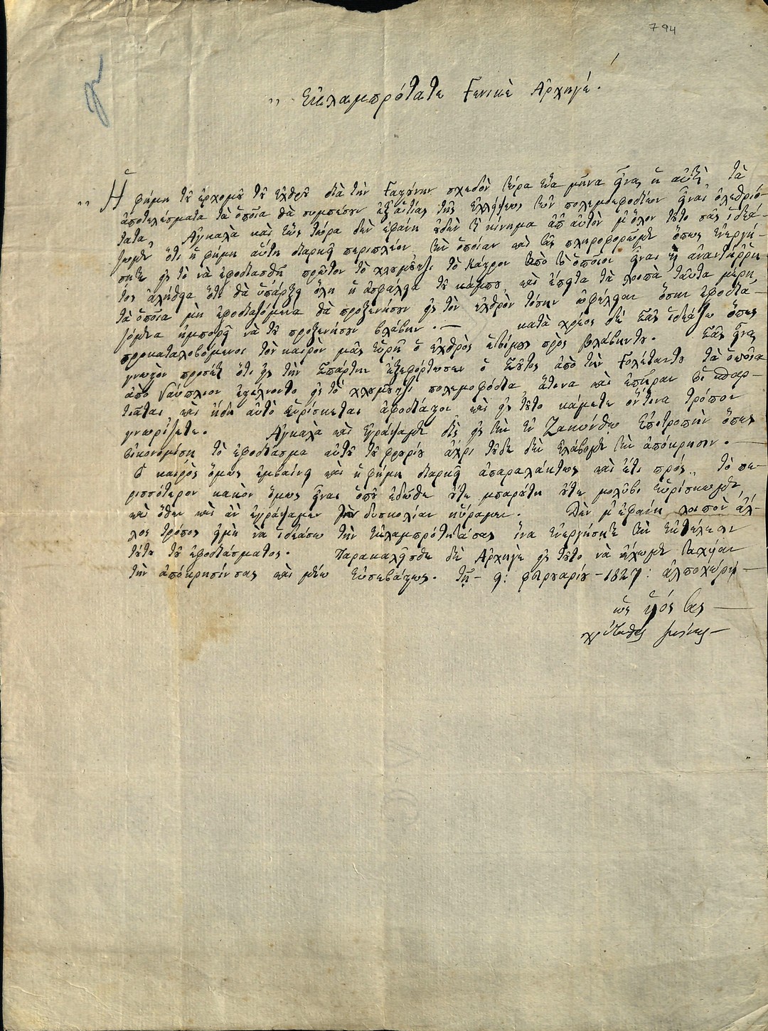 | Τίτλος | Επιστολη Χρυσανθου Σισινη προς Θεοδωρο Κολοκοτρωνη |