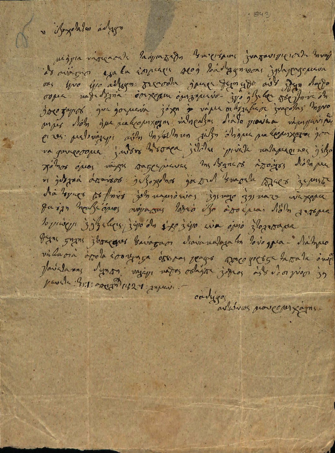 | Τίτλος | Επιστολη Αντωνιου Μαυρομιχαλη προς αδελφον (Μουρτζινο) |