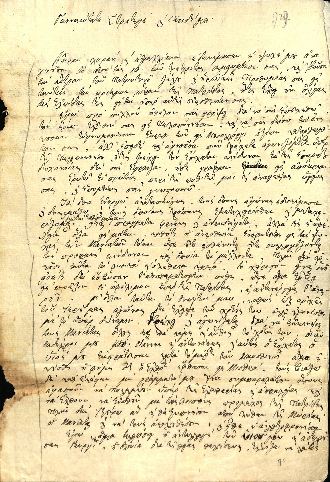 | Τίτλος | Επιστολή Πετρόμπεη Μαυρομιχάλη προς Π.Δ.Ε, Εκτελεστικό, για μαζική υποχώρηση και λιποταξία στρατευμάτων στην θεα των δυνάμεων Ιμπραήμ |