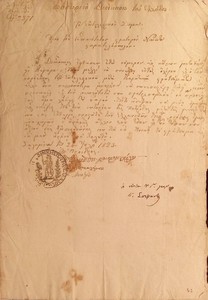 | Τίτλος | Επιστολή Προέδρου Εκτελεστικού Πετρόμπεη Μαυρομιχάλη προς Ιωάννη Θ.Κολοκοτρώνη (Γενναίο) περί εκτέλεσης διαταγών |