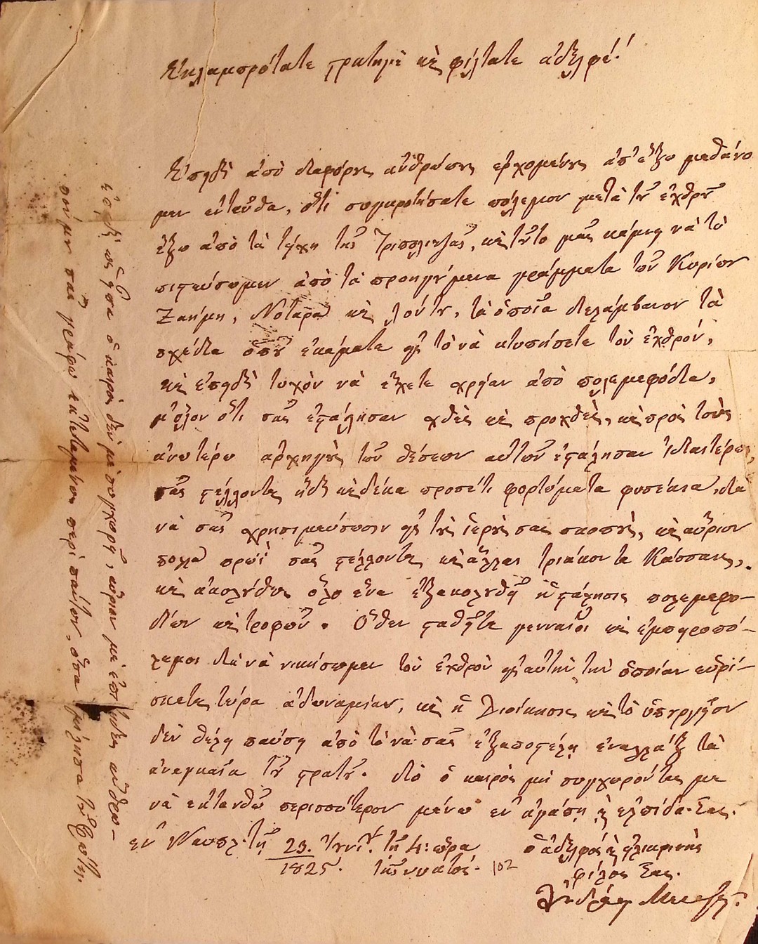 | Τίτλος | Επιστολη Ανδρεα Μεταξα προς Θεοδωρο Κολοκοτρωνη - ενθαρυνοντας τον τη στιγμη που ο κινδυνος στην Πελοποννησο ειναι αμεσος |