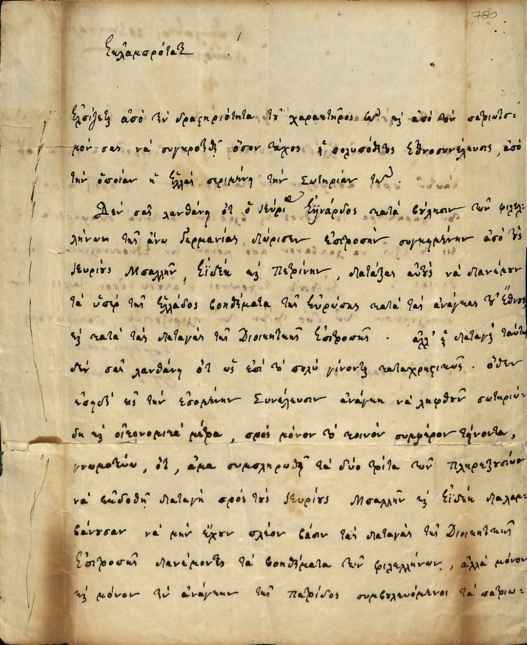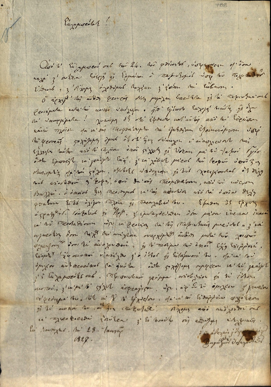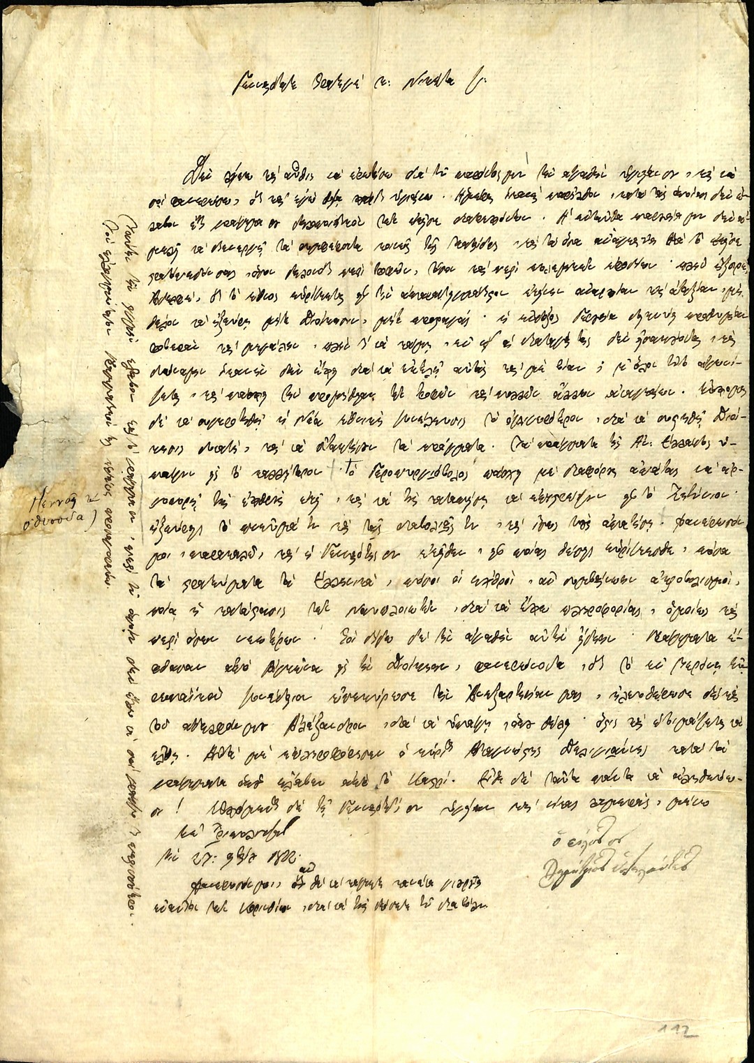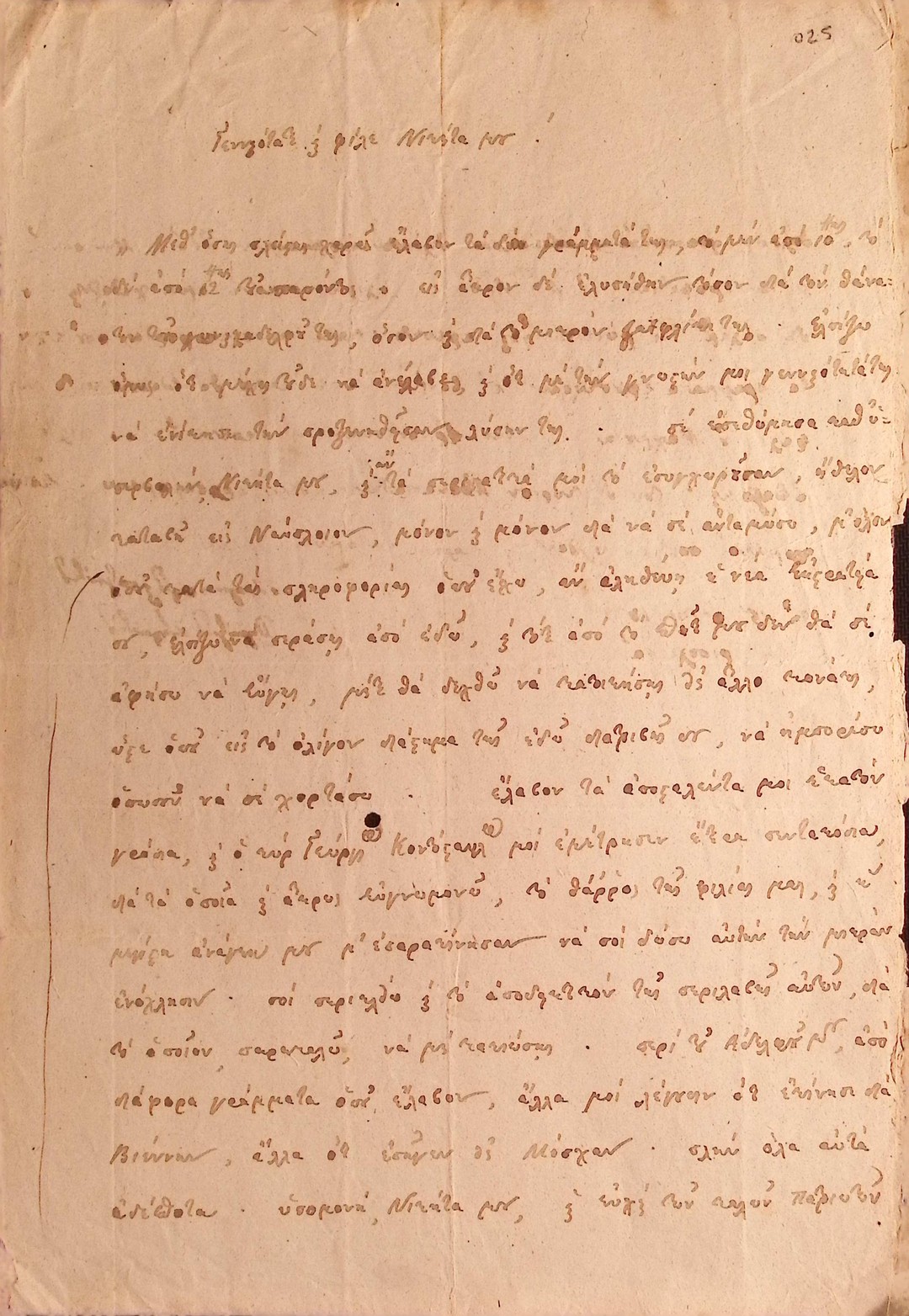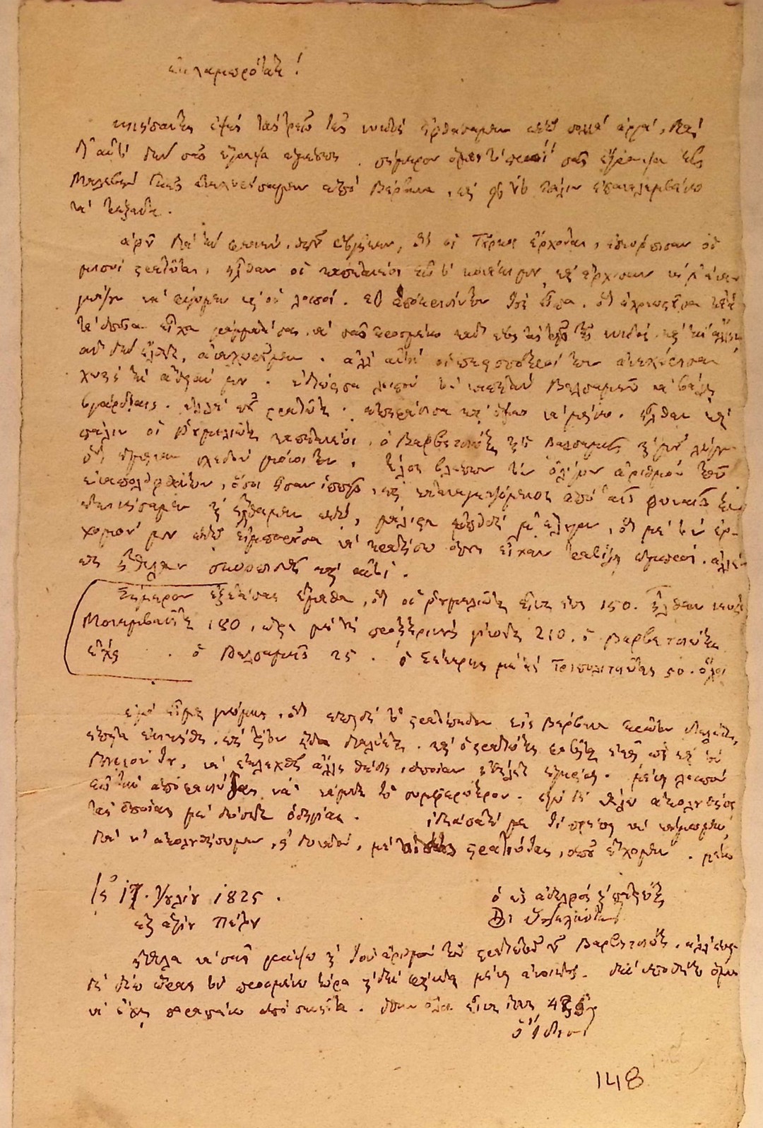 | Τίτλος | Επιστολή Δημήτριου Υψηλάντη προς Νικήτα Σταματελόπουλο (Νικηταρά) σχετικά με την κάθοδο του Ιμπραήμ και την διάταξη των δυνάμεων του και έκκληση να επιταχύνει τον ερχομό του |