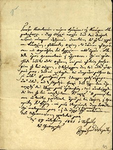 | Τίτλος | Επιστολή συγχαρητήρια του Δημήτριου Υψηλάντη προς Θεόδωρο Κολοκοτρώνη για την μάχη της Γράνας |