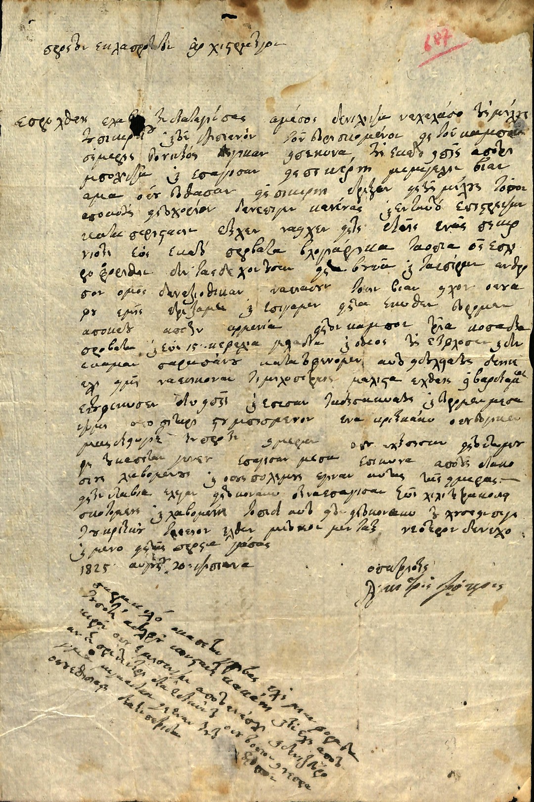 | Τίτλος | Επιστολη Δημητρη Τζωκρη προς Θεοδωρο Κολοκοτρωνη - αναφορικα με στρατολογηση στρατιωτων |