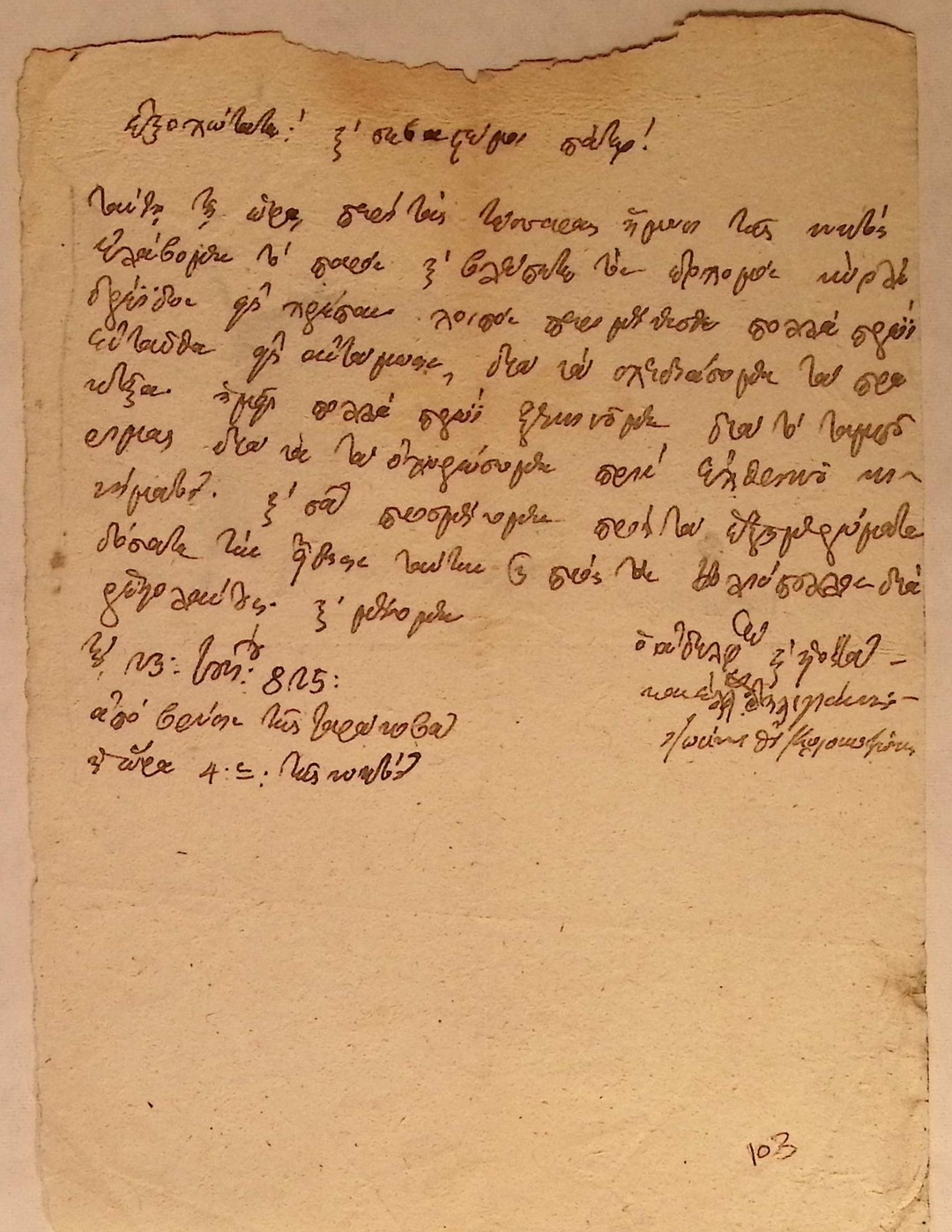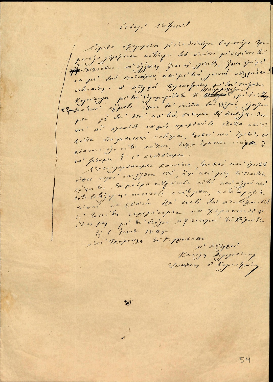 | Τίτλος | Επιστολή Κανέλλου Δεληγιάννη και Ιωάννη Θ.Κολοκοτρώνη (Γενναίου) προς Επιτροπή για άμεση αποστολή πολεμοφοδίων (.. τώρα έγινεν η ώρα ή να ζήσουμε ή να αποθάνωμεν) |