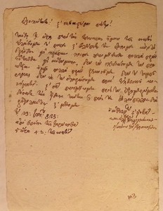 | Τίτλος | Επιστολή Κανέλλου Δεληγιάννη και Ιωάννη Θ.Κολοκοτρώνη (Γενναίου) προς Θεόδωρο Κολοκοτρώνη με πληροφοριες κίνησης στρατευμάτων |