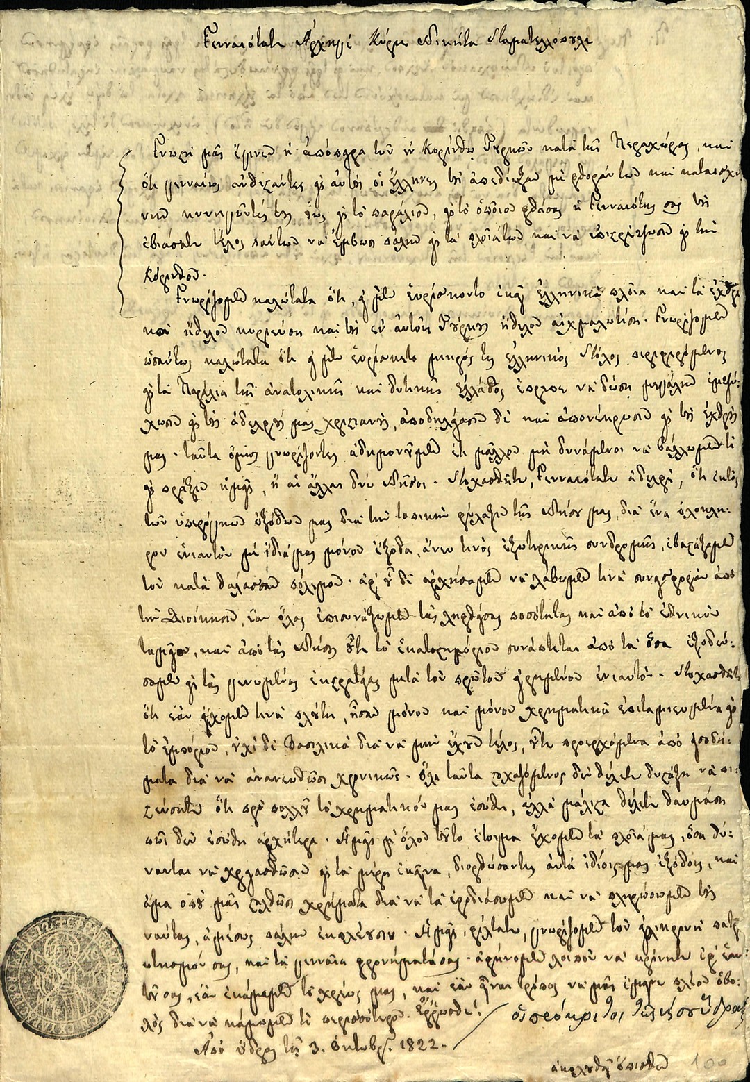 | Τίτλος | Επιστολή προκρίτων Ύδρας προς Θεόδωρο Κολοκοτρώνη |