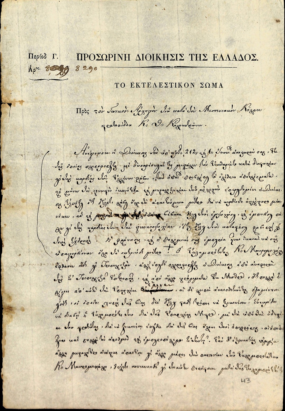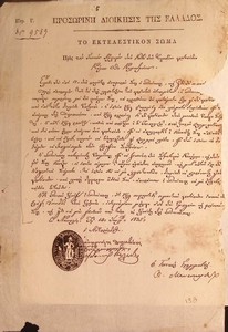 | Τίτλος | Επιστολή Π.Δ.Ε, του Εκτελεστικού προς Θεόδωρο Κολοκοτρώνη κ.α με αποδοχή πρότασης ακρόασης του Αναγνώστη Παπαγιαννόπουλου |
