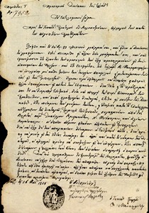 | Τίτλος | Επιστολή Π.Δ.Ε, του Εκτελεστικού προς Γενικό Αρχηγό Θεόδωρο Κολοκοτρώνη με πληροφορίες κίνησης εχθρικών στρατευμάτων |