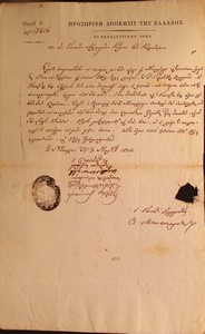 | Τίτλος | Επιστολη Π.Δiοικησης προς Γενναιο Κολοκοτρωνη αναφορικα με μεταβαση του στις Σπετσες ανευ μισθοδοσιας |