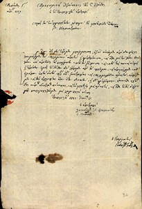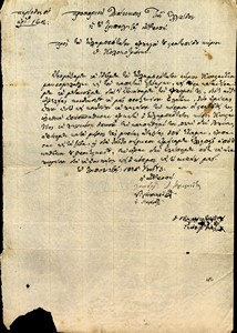 | Τίτλος | Επιστολή Π.Δ.Ε, της Επιτροπής Φροντιστών προς Στρατηγό Θεόδωρο Κολοκοτρώνη για έγκριση ή μη αποστολής στρατεύματος 200 ανδρών |