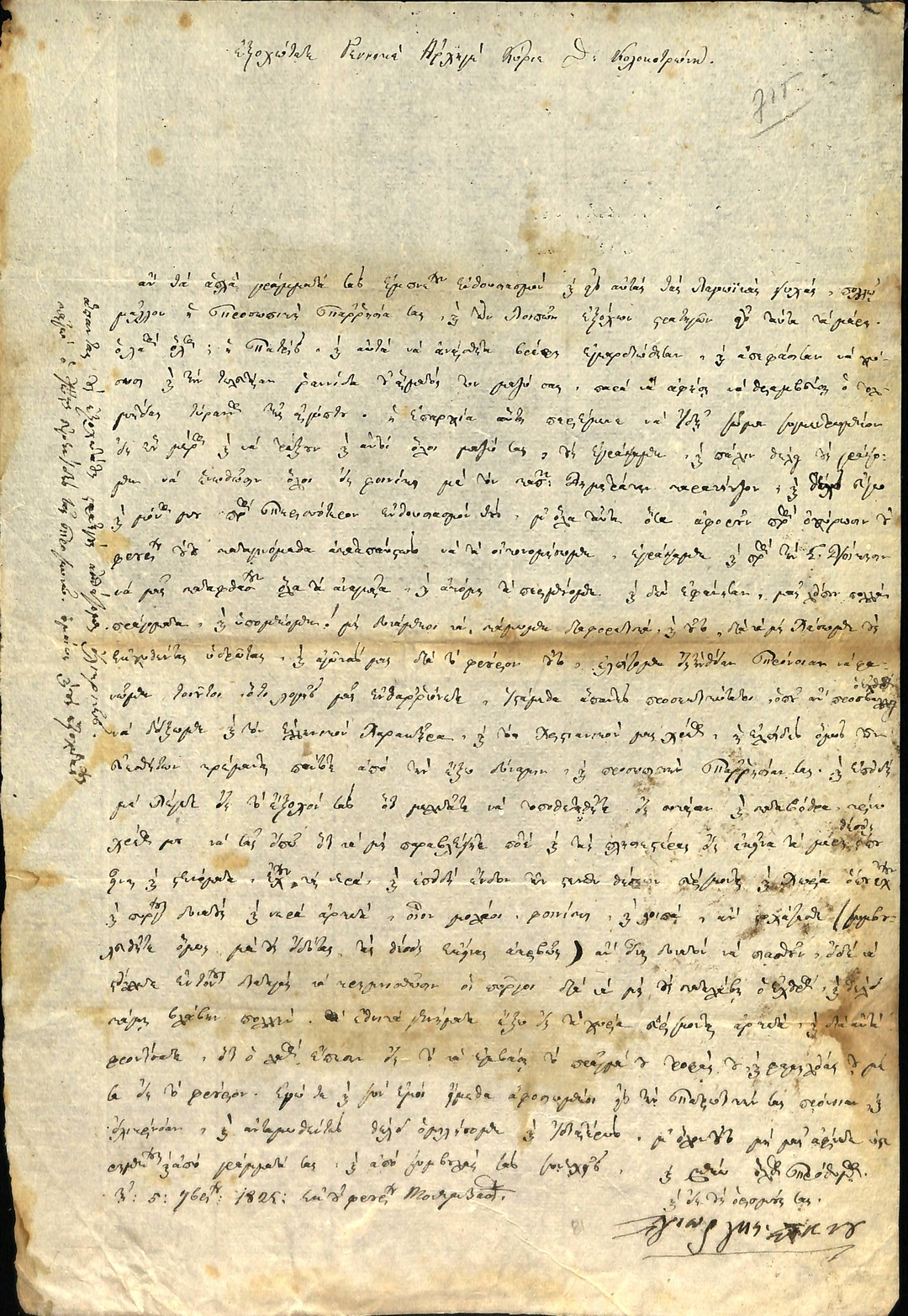 | Τίτλος | Επιστολή Πληρεξουσίων Ύδρας, Σπετσών και Ψαρών προς Στρατηγό Θεόδωρο Κολοκοτρώνη και να επισπεύσει τον ερχομό του στρατεύματος του |