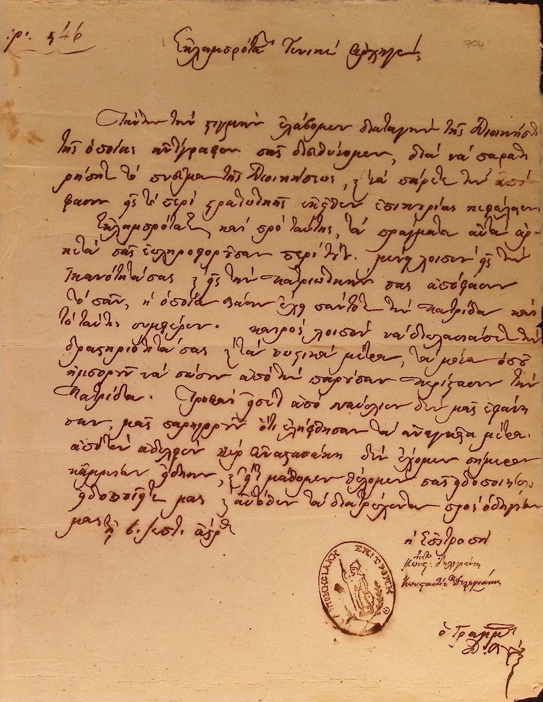 | Τίτλος | Επιστολή Προέδρου Εκτελεστικού προς τον Θεόδωρο Κολοκοτρώνη για την εκλογή του στη θέση Αντιπροέδρου του Έκτελεστικου |