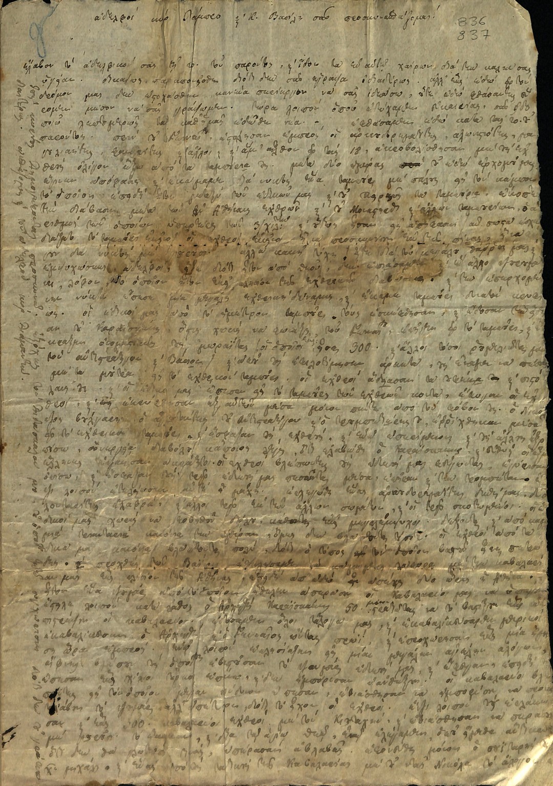 | Τίτλος | Επιστολή - έκκληση της Πελοποννησιακής Γερουσίας προς Βασίλη Δημητρακόπουλο για άμεση ανάγκη σε εκατό ζώα για τις ανάγκες του Αγώνα |